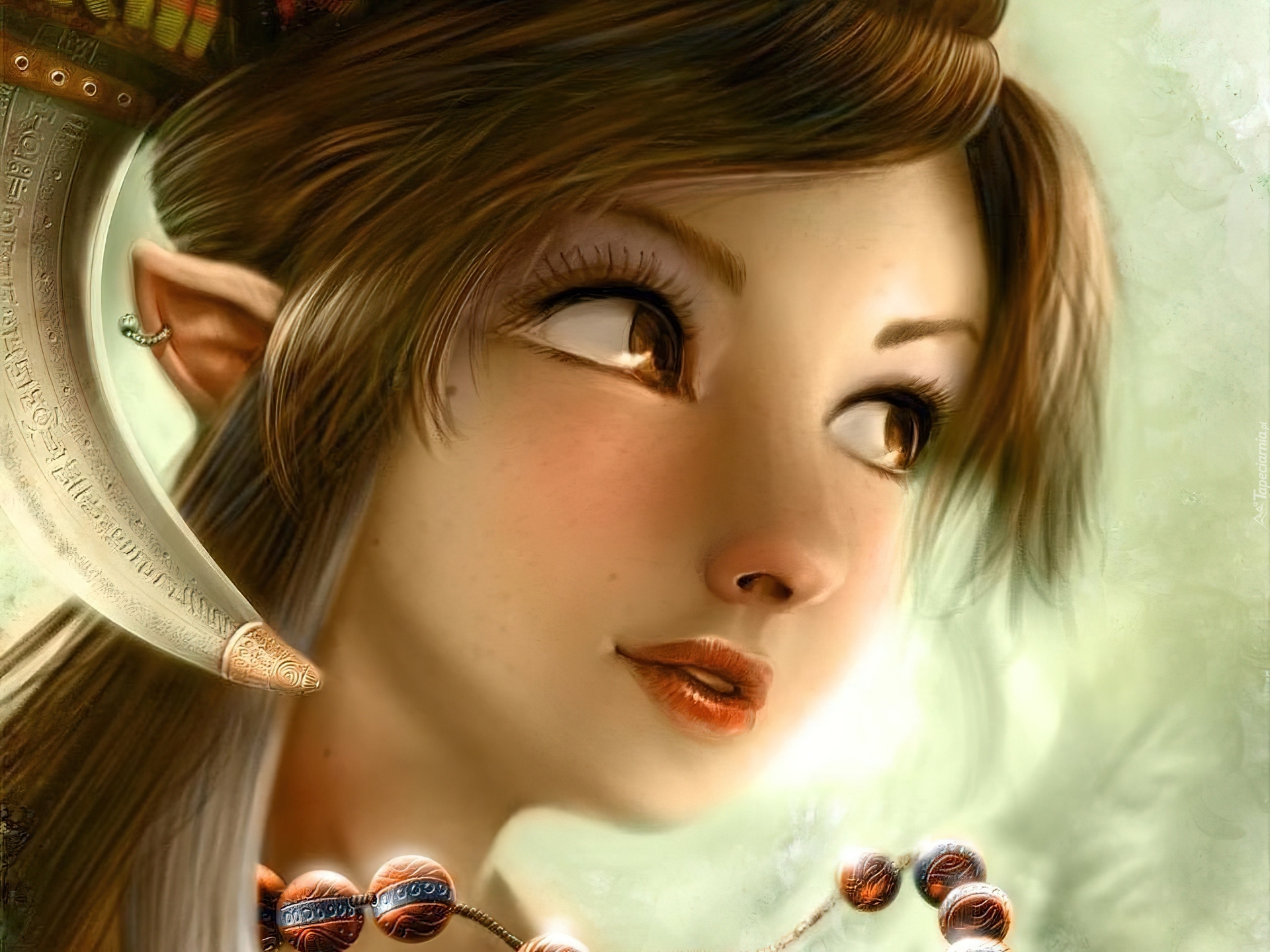 Edytor tapety: Kobieta, Elf, Róg, Koraliki