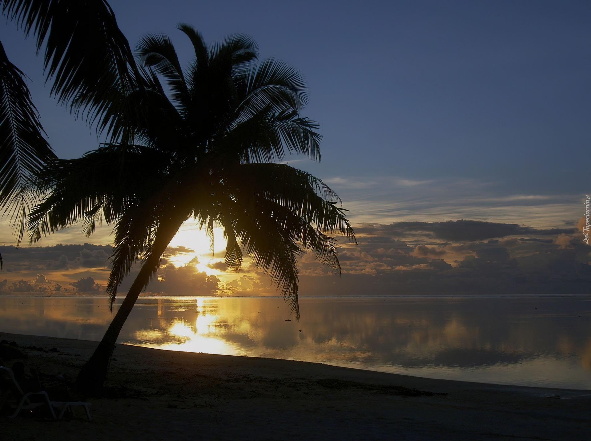 Edytor tapety: Chmury, Zachód, Słońca, Morze, Palma