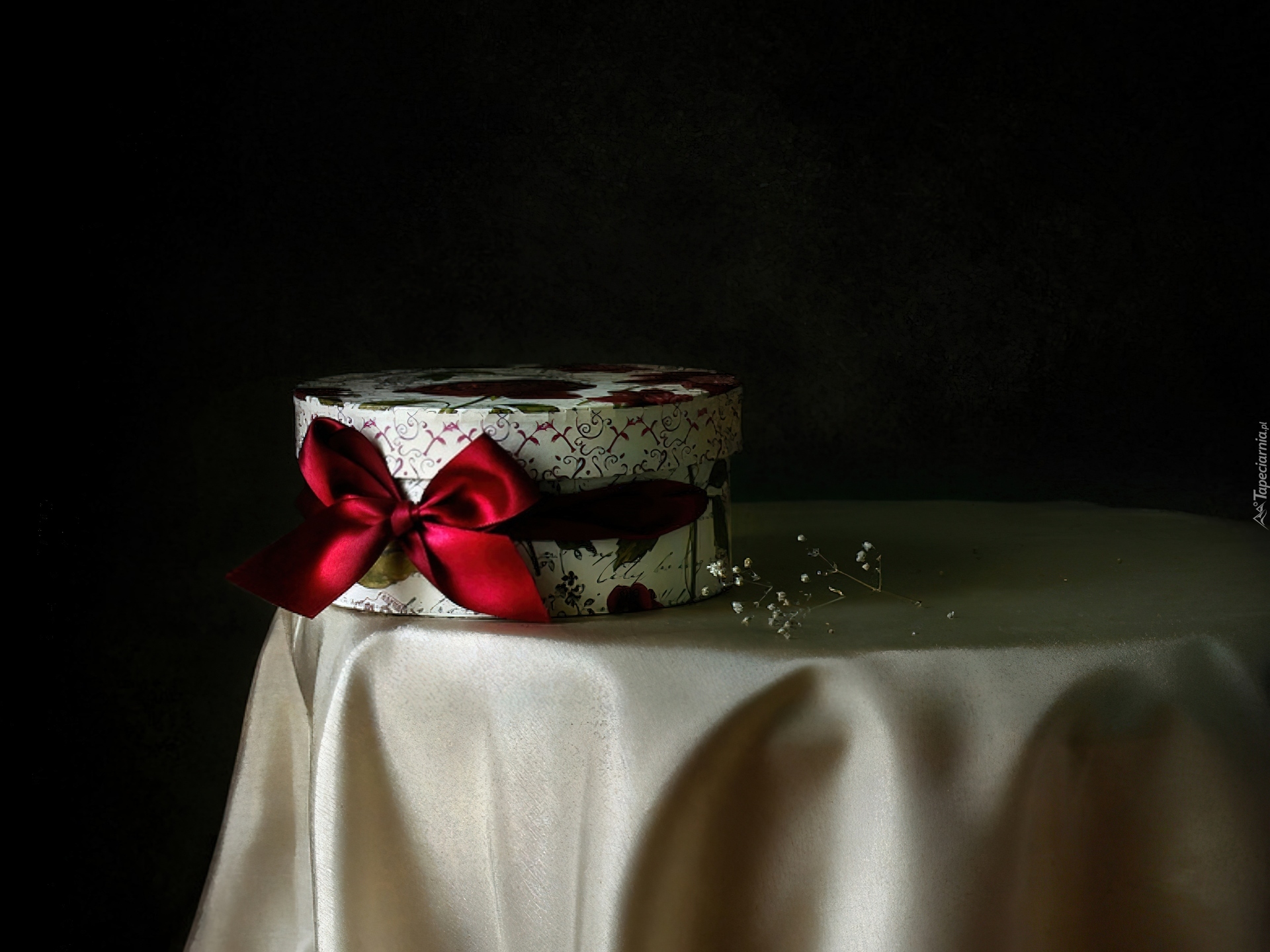 Edytor tapety: Stół, Biały, Obrus, Pudełko, Prezent, Wstążka