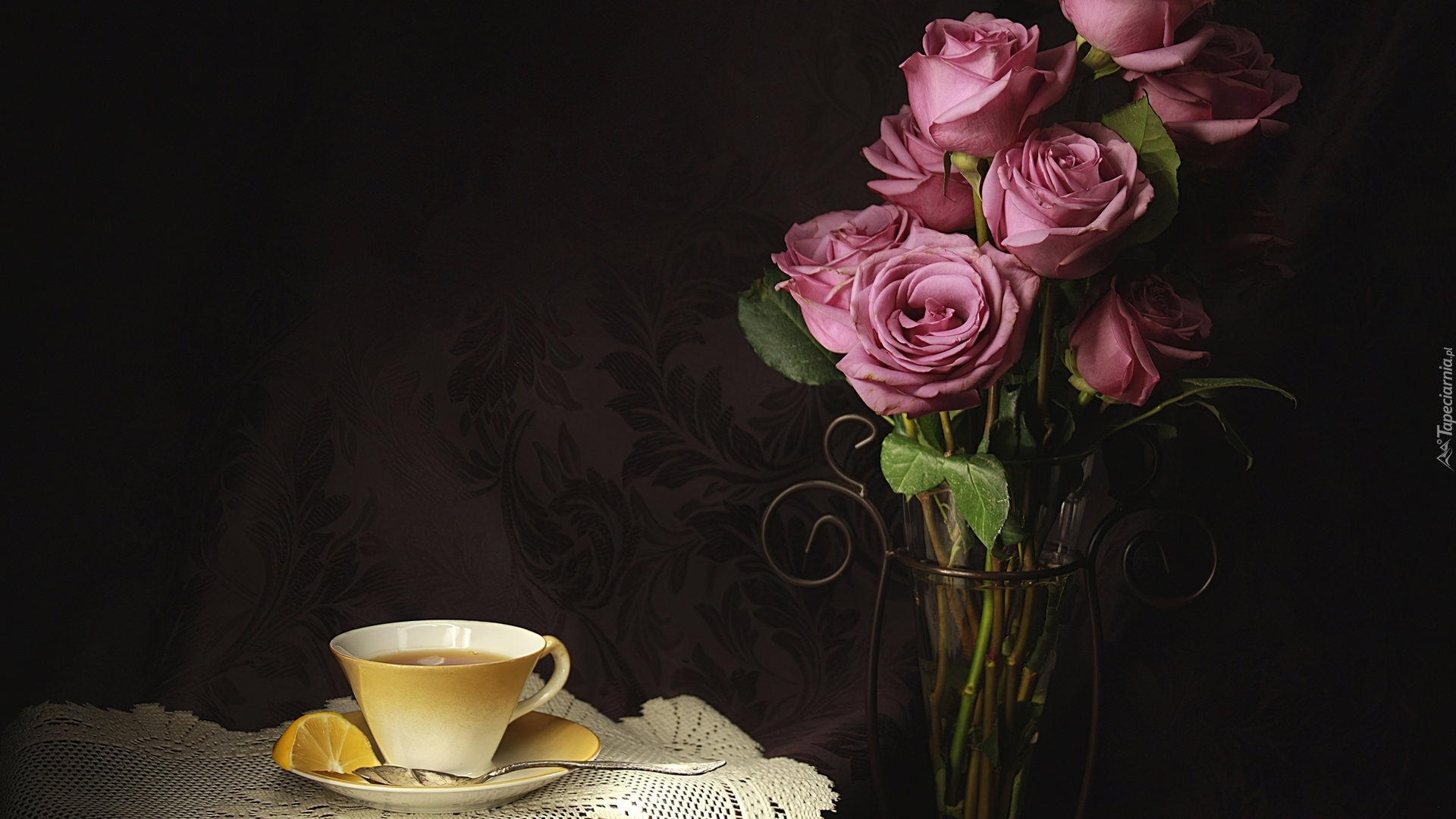 Edytor tapety: Flakon, Róże, Filiżanka