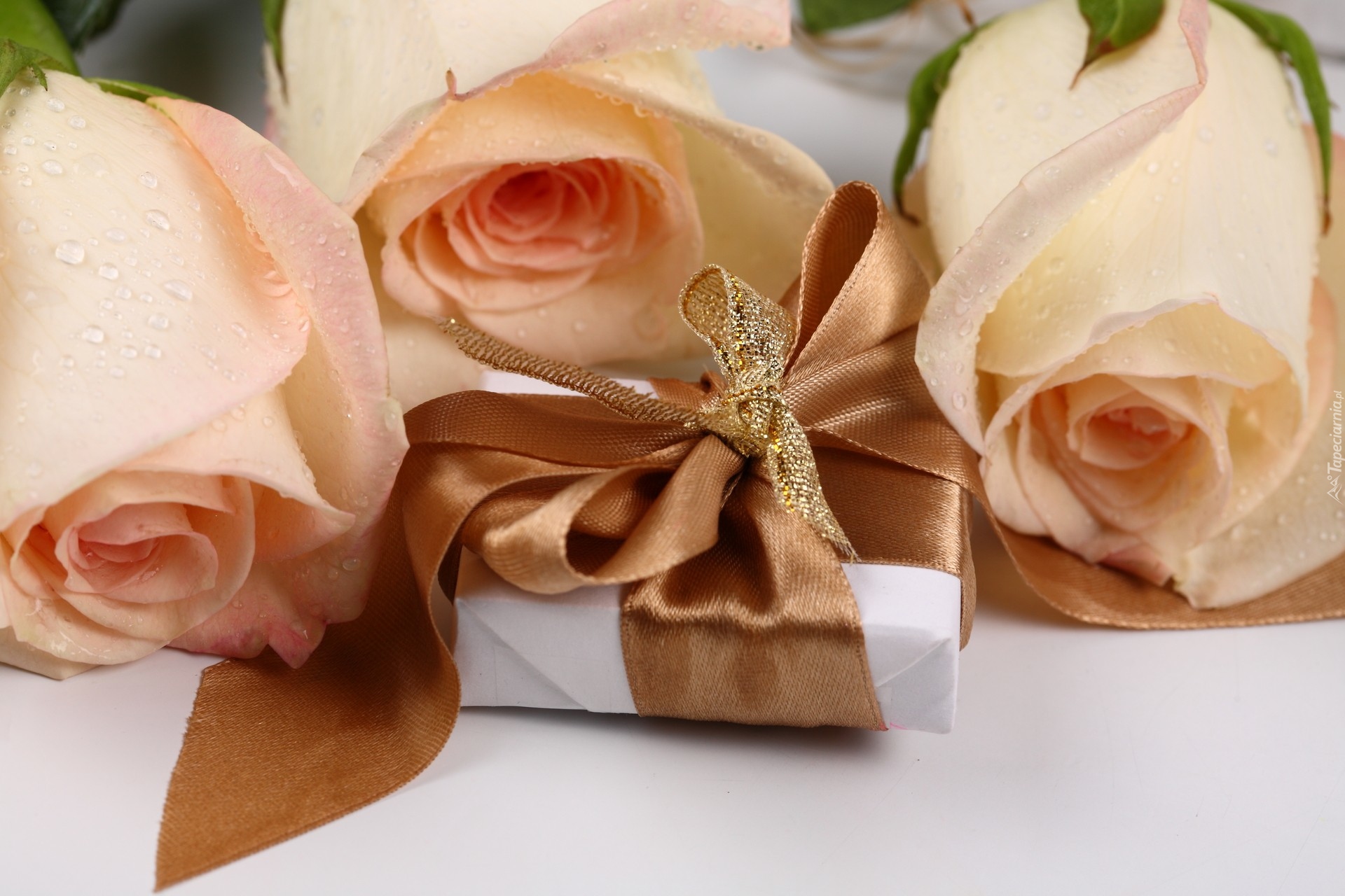 Edytor tapety: Róze, Prezent, Brązowa, Wstążka