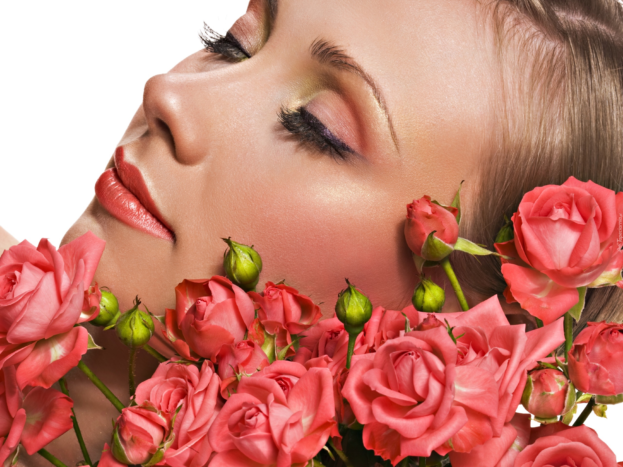 Edytor tapety: Twarz, Kobiety, Makijaż, Róże