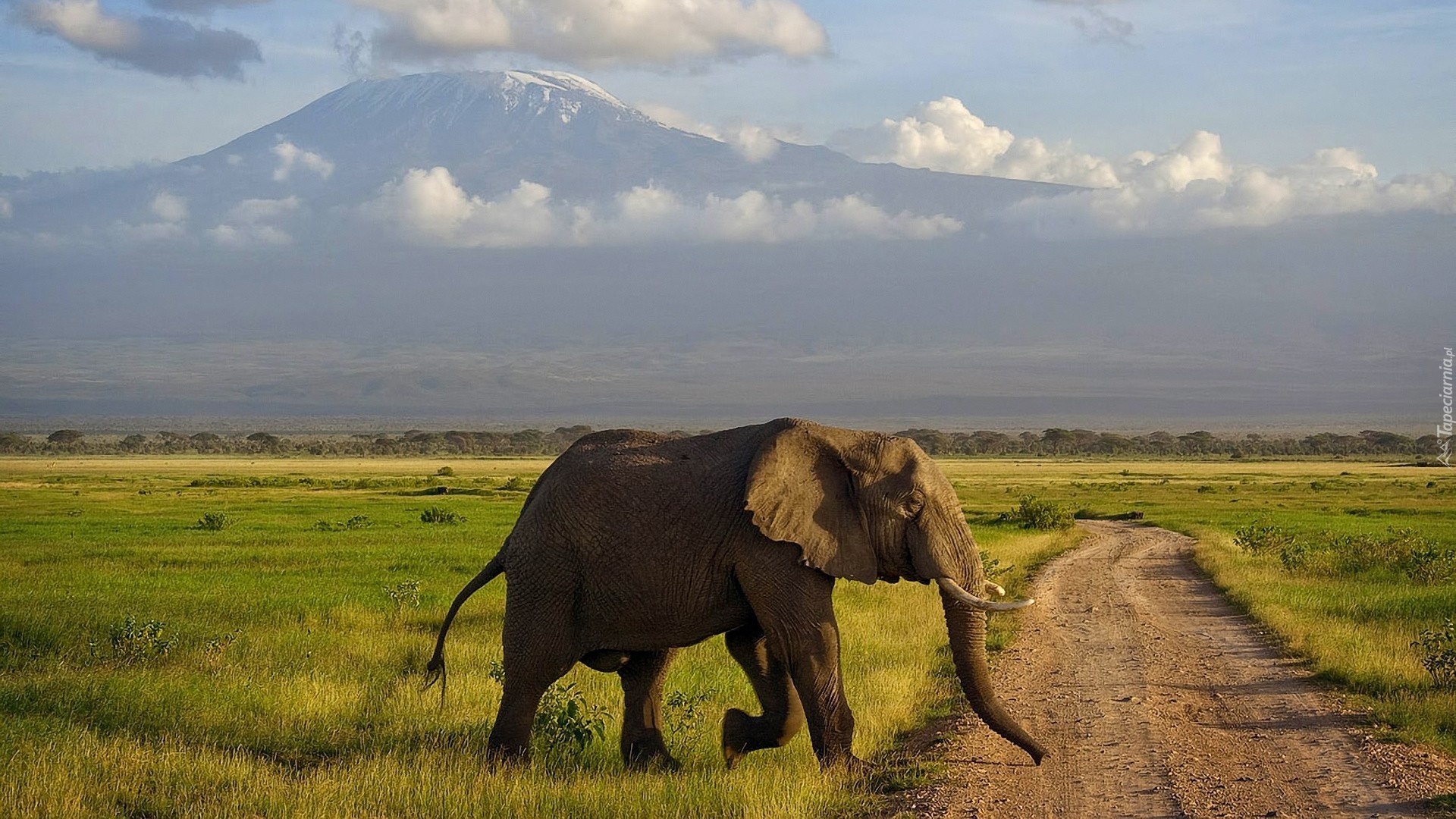 Edytor tapety: Słoń, Góry, Droga, Trawa
