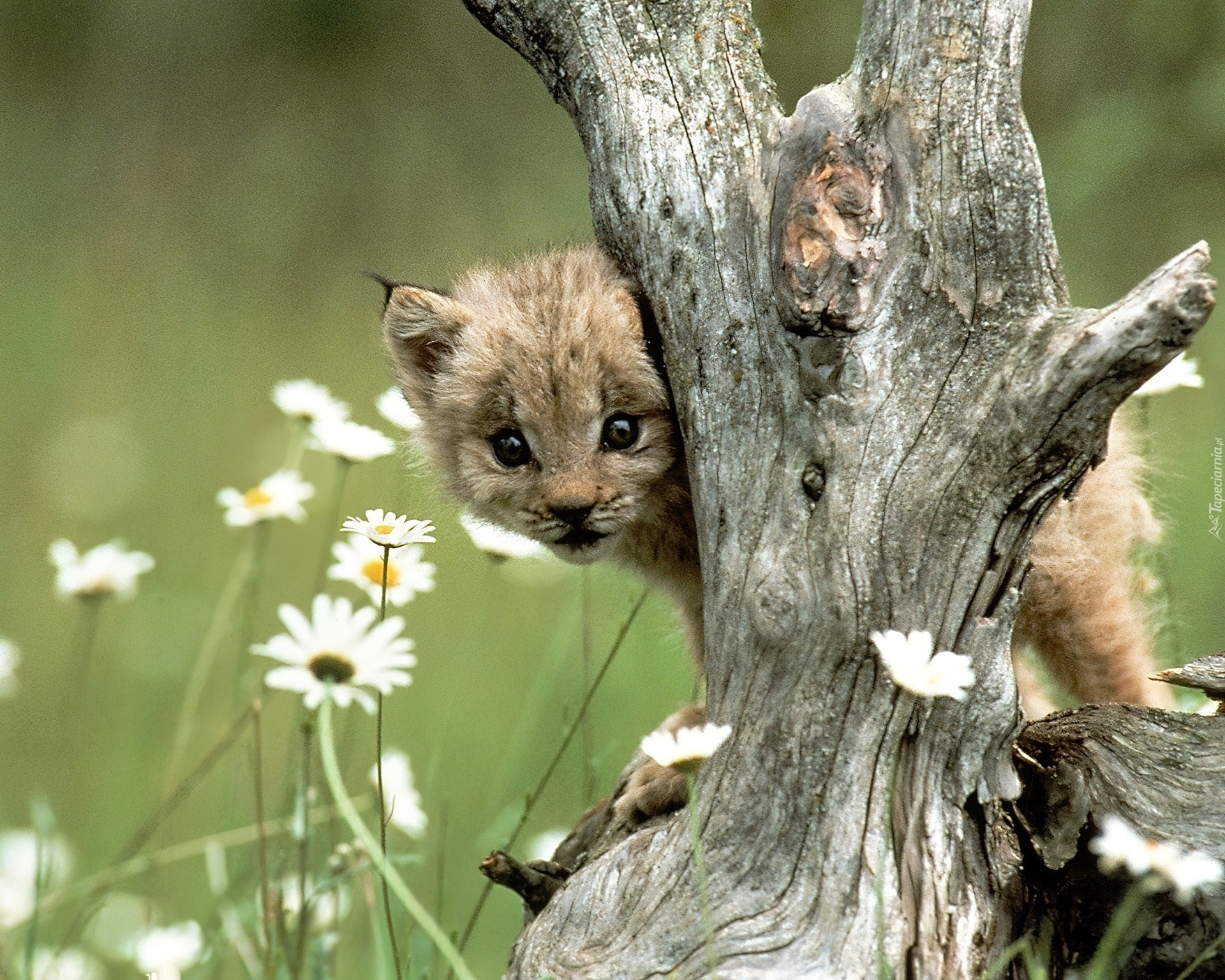Edytor tapety: Mały, Ryś, Drzewo, Kwiatki