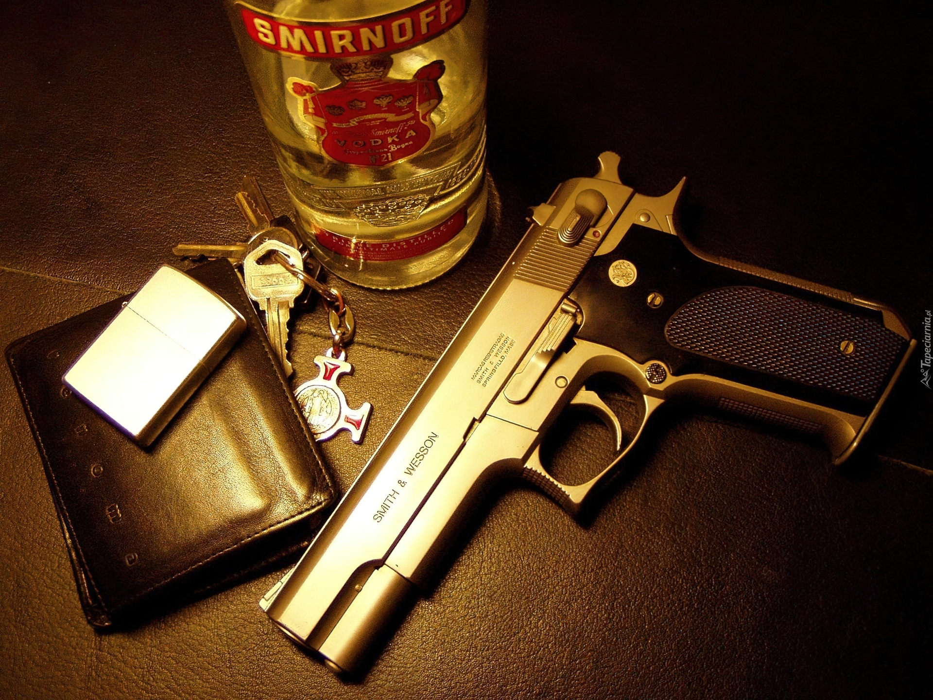 Edytor tapety: Wódka, Smirnoff, Pistolet, Portfel, Zapalniczka, Klucze