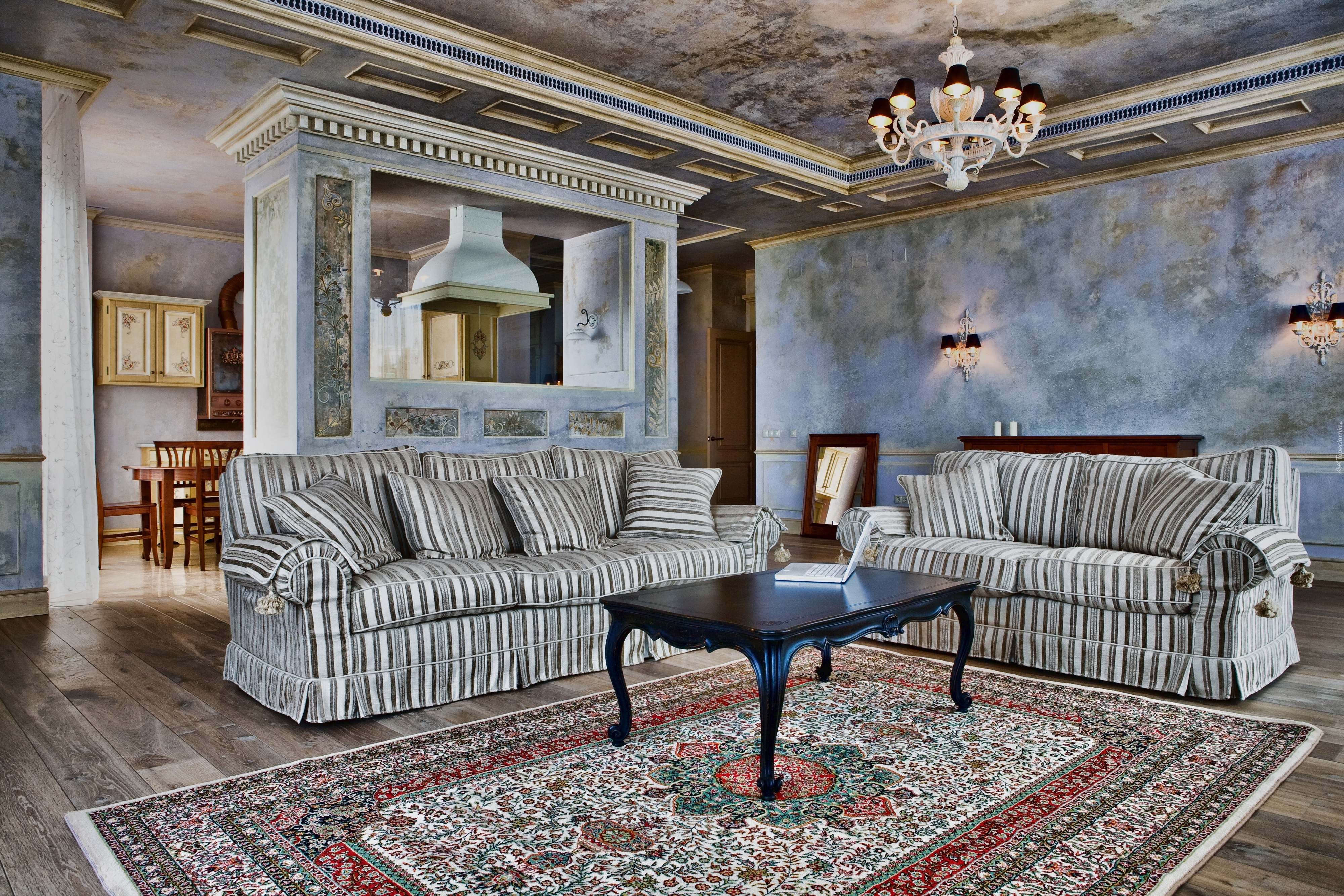 Edytor tapety: Salon, Sofy, Stylowy, Stolik, Dywan
