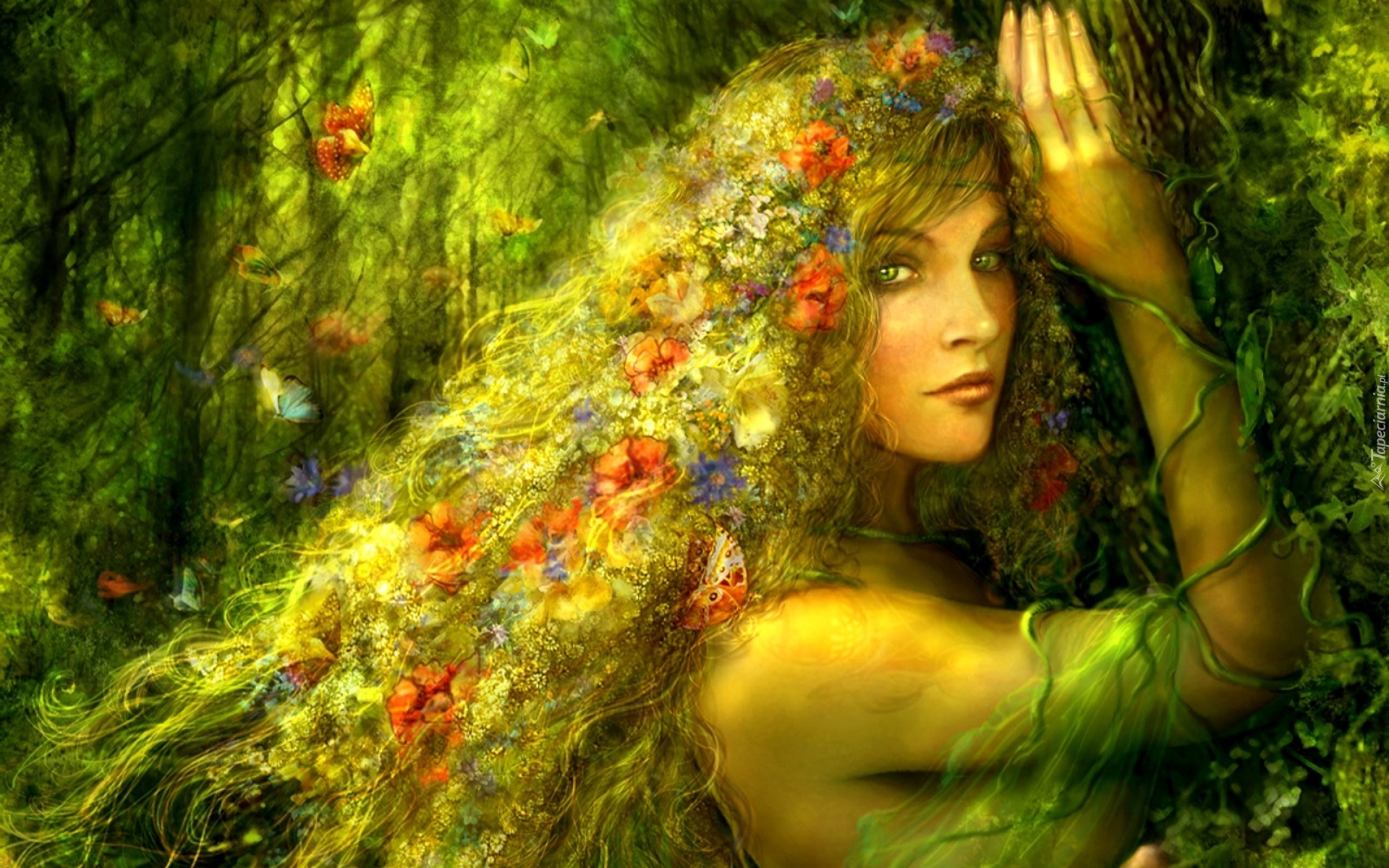 Edytor tapety: Dziewczyna, Włosy, Blond, Kwiatki