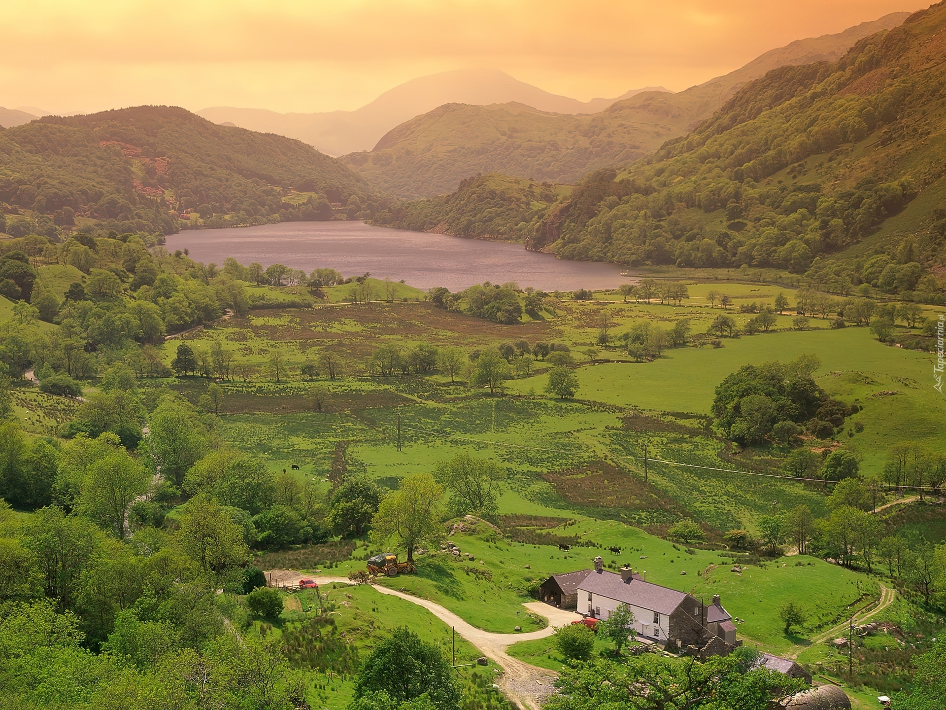 Edytor tapety: Góry, Jezioro, Wioska
