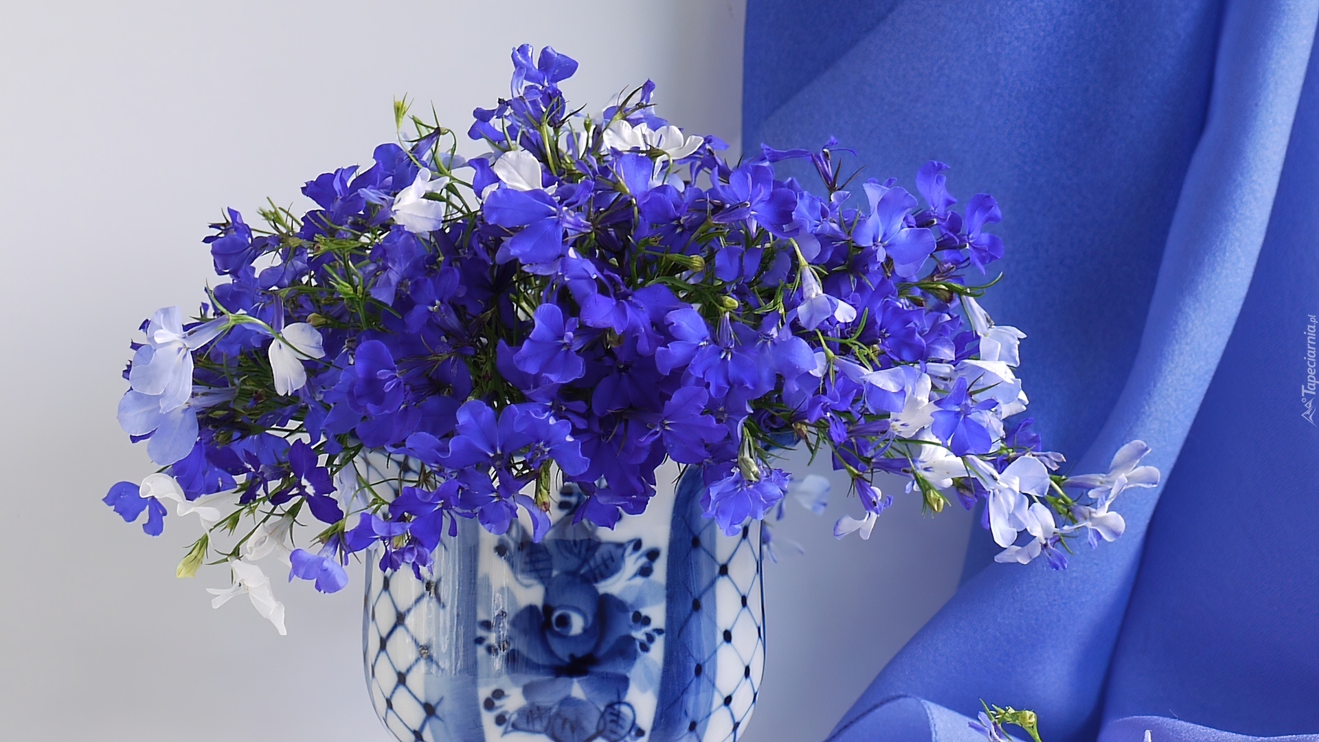 Edytor tapety: Wazon, Bukiet, Niebieskich, Kwiatów