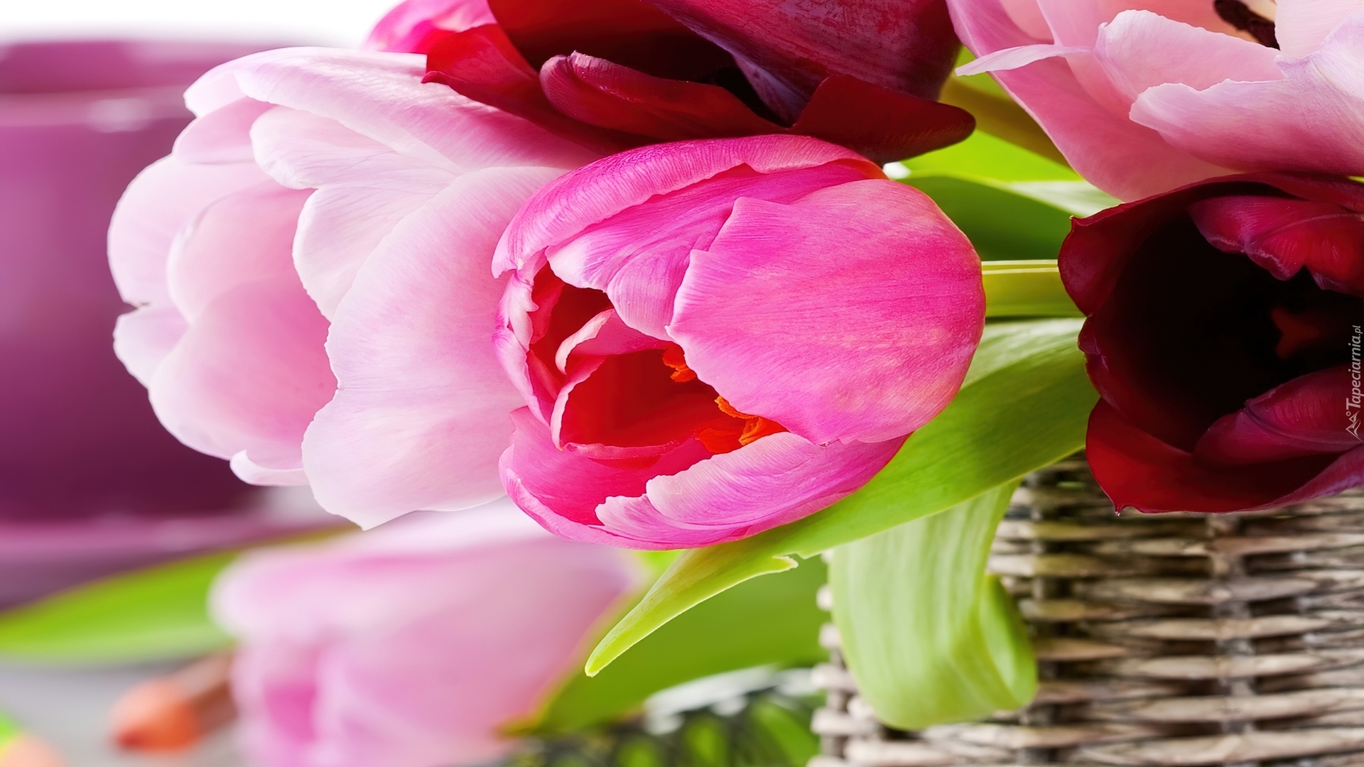 Edytor tapety: Różowe, Tulipany, Koszyk
