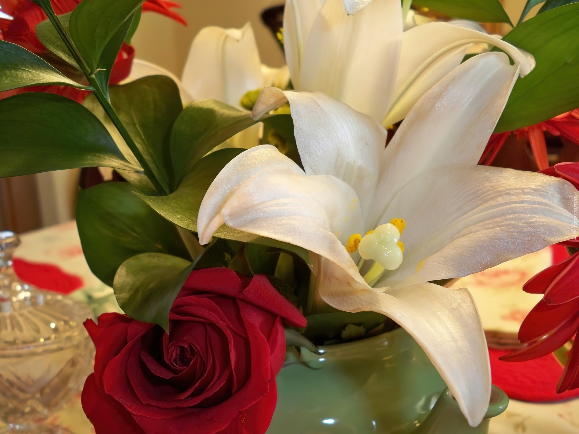Edytor tapety: Bukiet, Kwiatów, Lilie, Róża