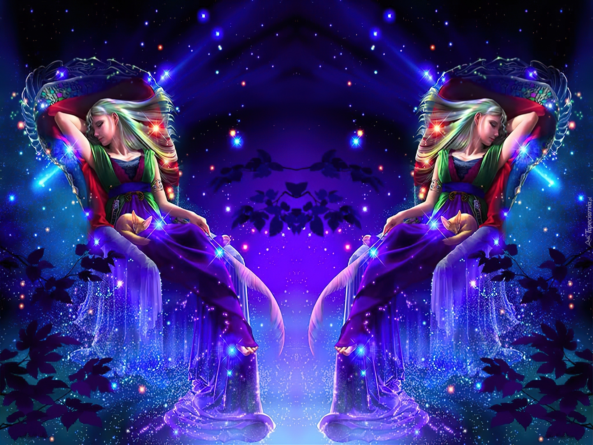 Edytor tapety: Dwie, Kobiety, Pióra, Koty