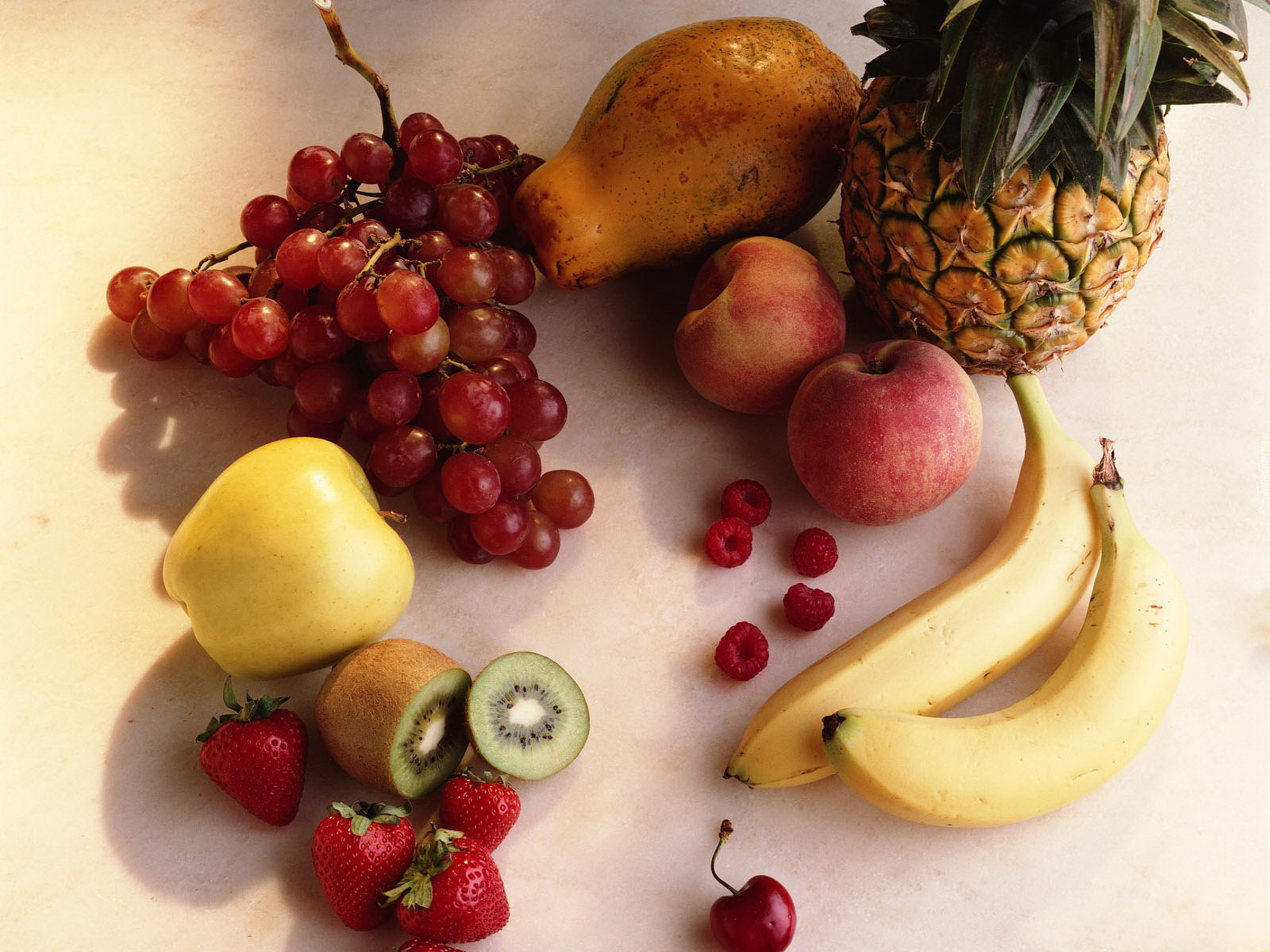 Edytor tapety: Banany, Winogrona, Ananas, Jabłka