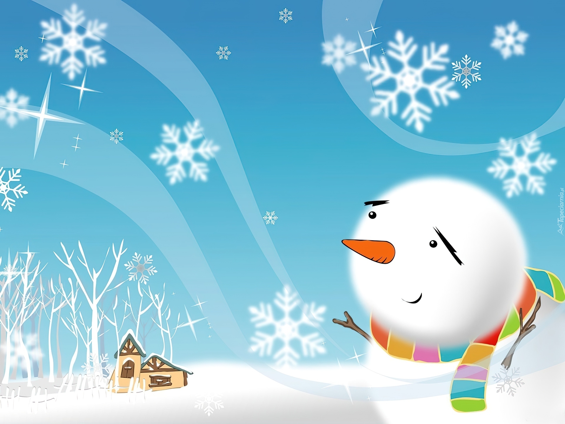 Edytor tapety: Bałwanek, Płatki, Śniegu, Domek