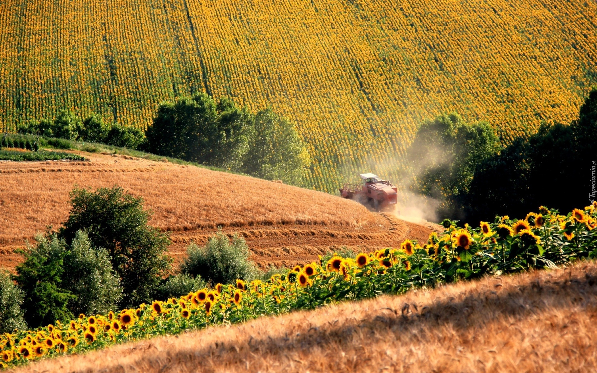 Edytor tapety: Pole, Kombajn, Słoneczniki