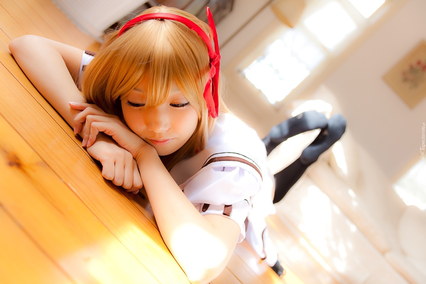 Edytor tapety: Śpiąca, Dziewczynka, Czerwona, Opaska