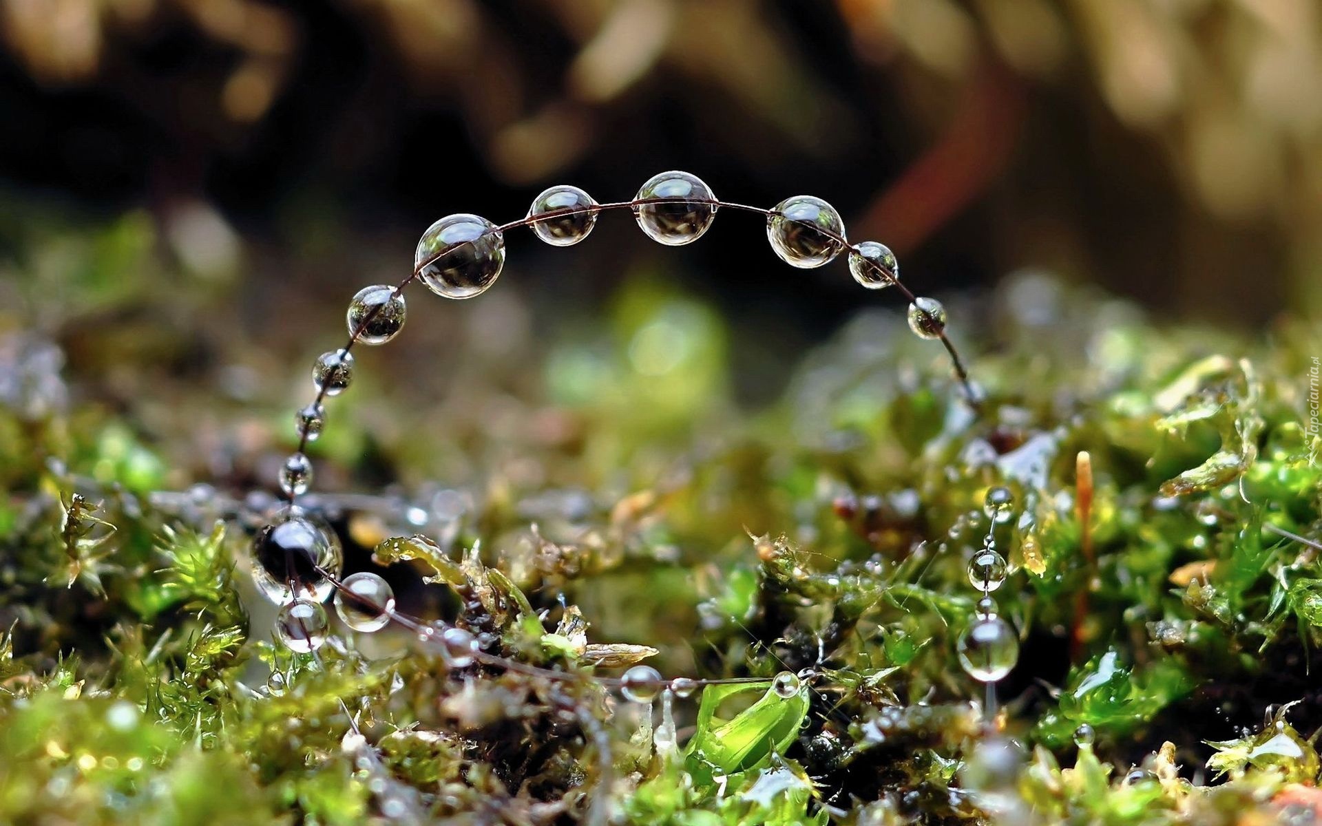 Edytor tapety: Trawy, Mech, Krople, Rosy