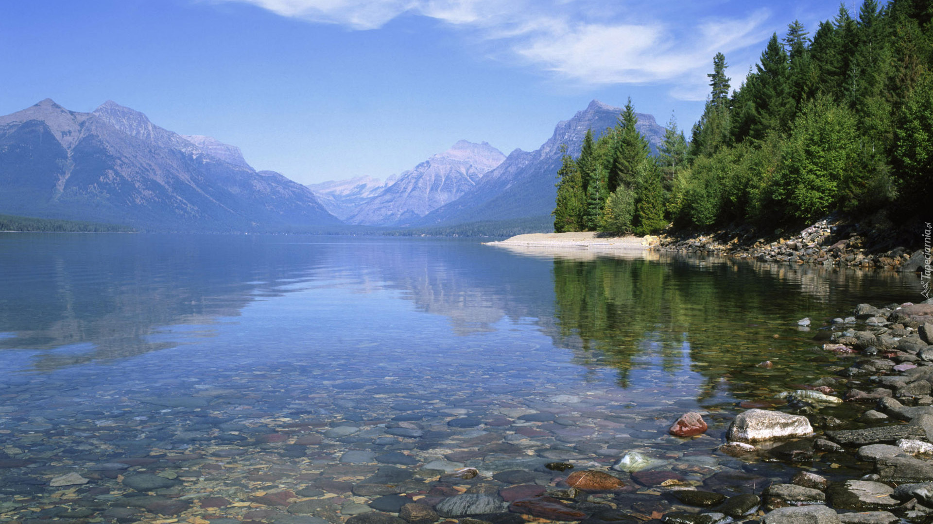 Edytor tapety: Góry, Jezioro, Przejrzysta, Woda, Las