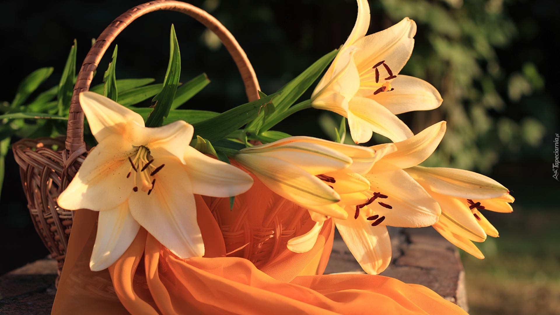 Edytor tapety: Kosz, Pomarańczowy, Szal, Lilie