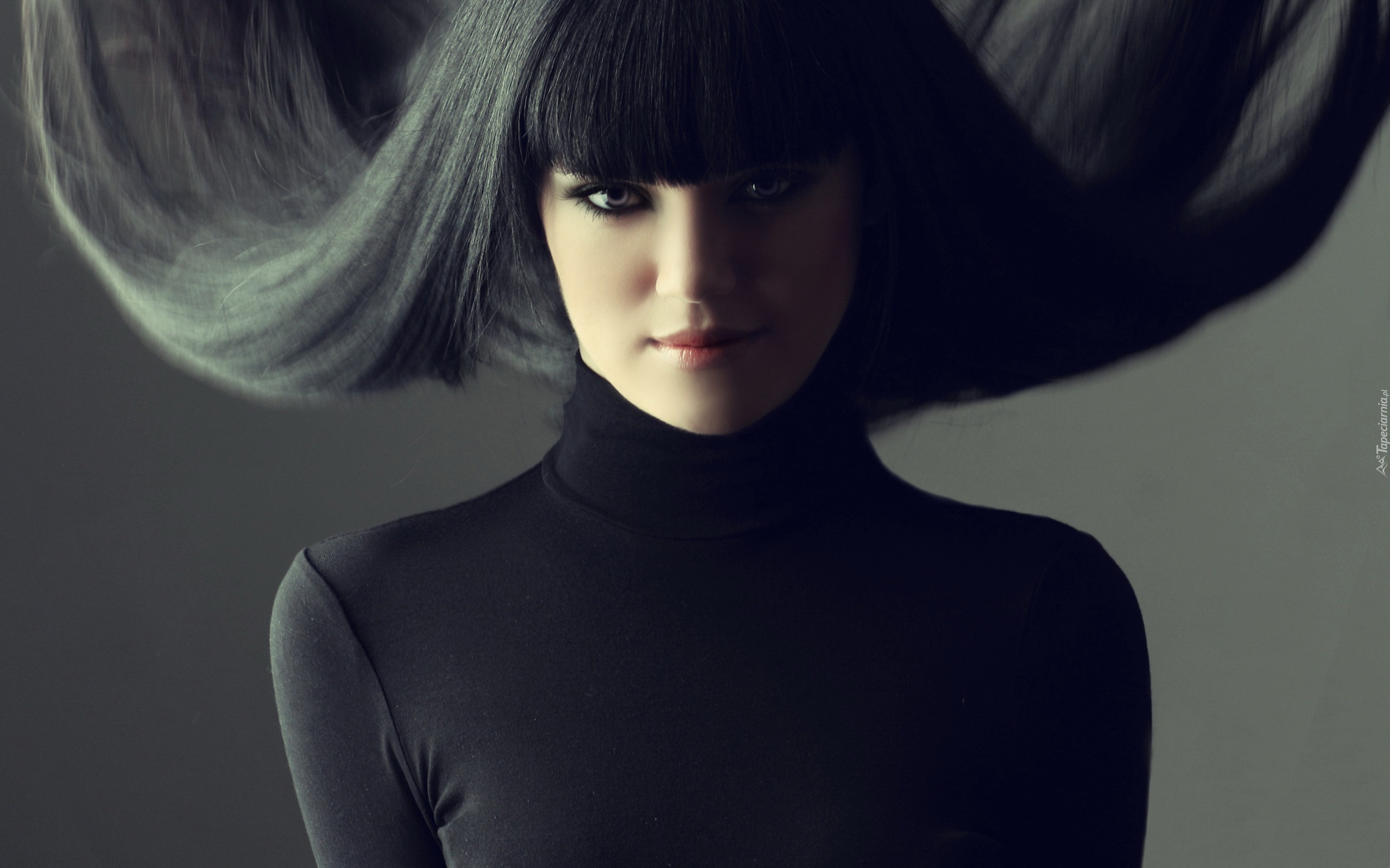 Edytor tapety: Kobieta, Czerń, Grzywka