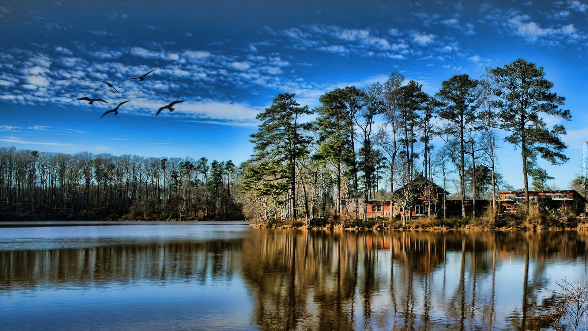 Edytor tapety: Jezioro, Dom, Zasłonięty, Drzewami