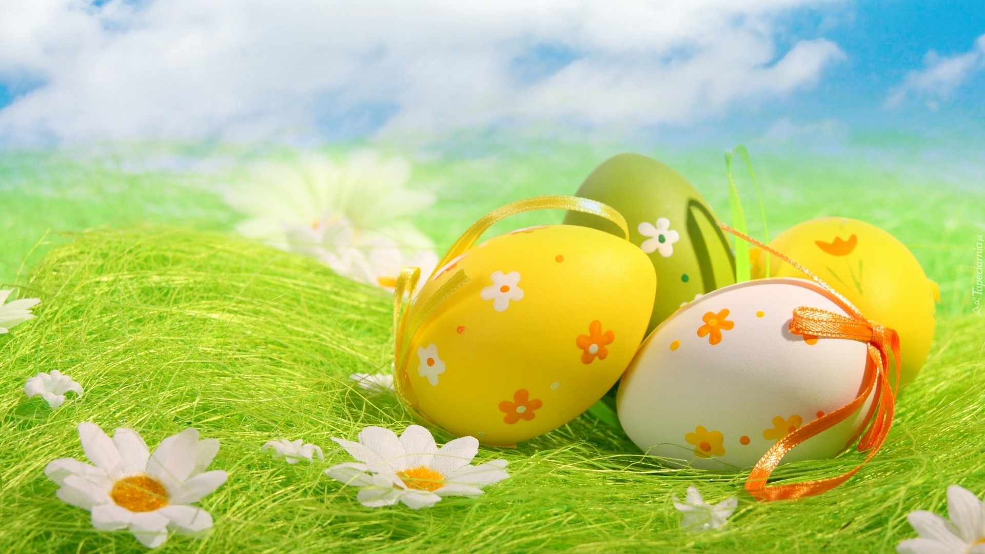 Edytor tapety: Wielkanocne, Jajeczka, Kwiatki, Zielona, Trawa