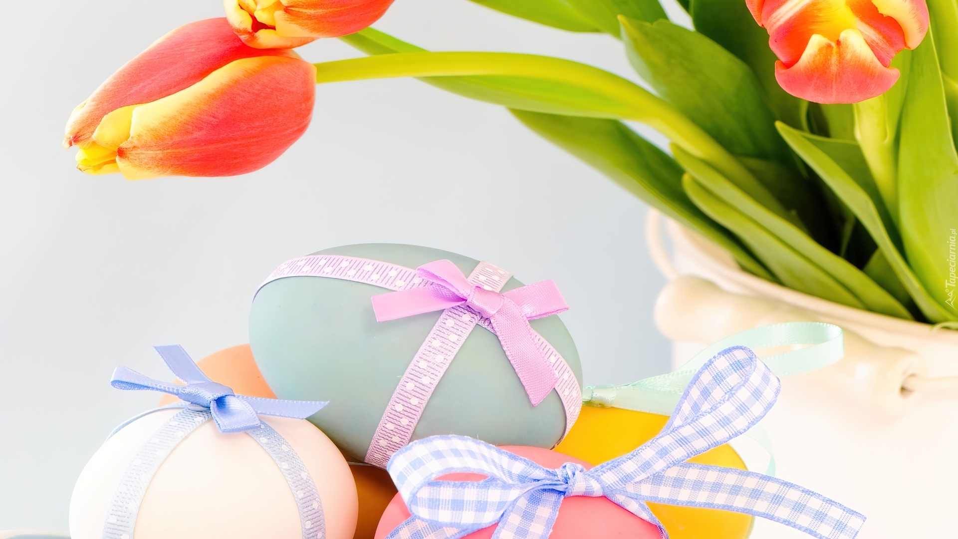 Edytor tapety: Wielkanocne, Jajeczka, Wazon, Tulipany