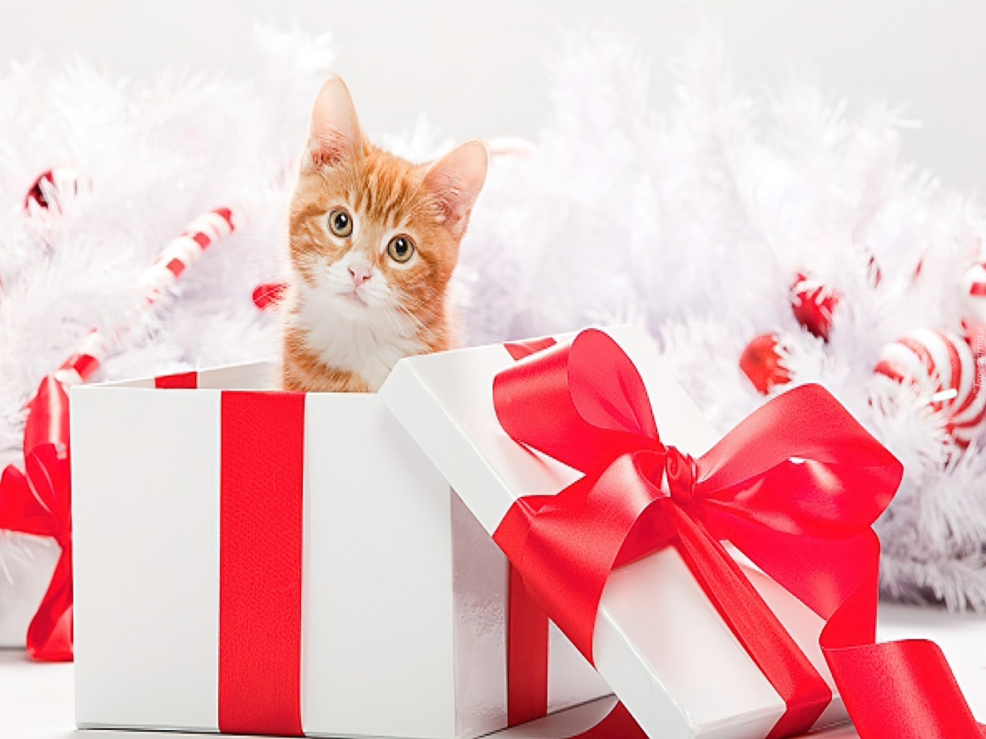 Edytor tapety: Mały, Rudy, Kotek, Świąteczna, Dekoracja
