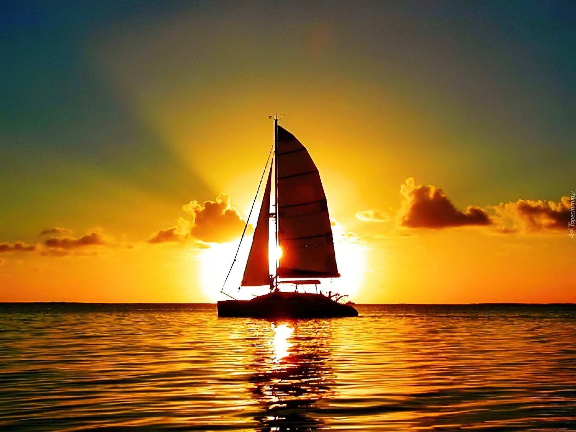 Edytor tapety: Zachód, Słońca, Morze, Żaglówka