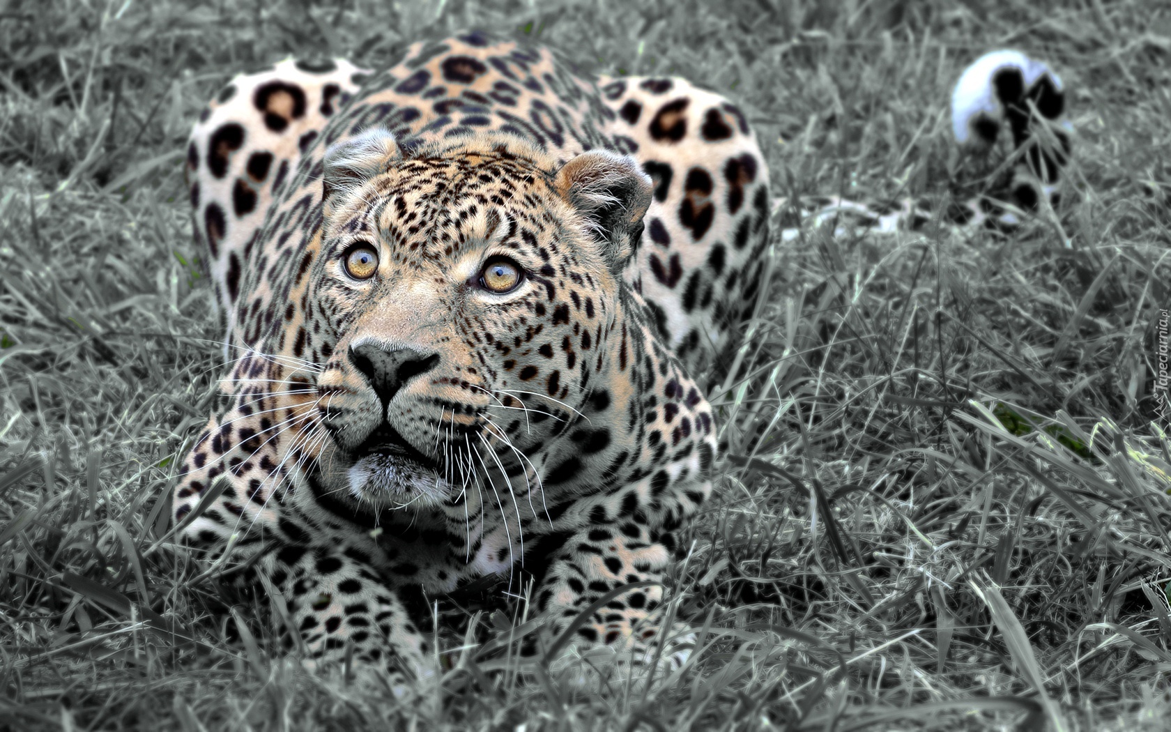 Edytor tapety: Przyczajony, Lampart, Trawa