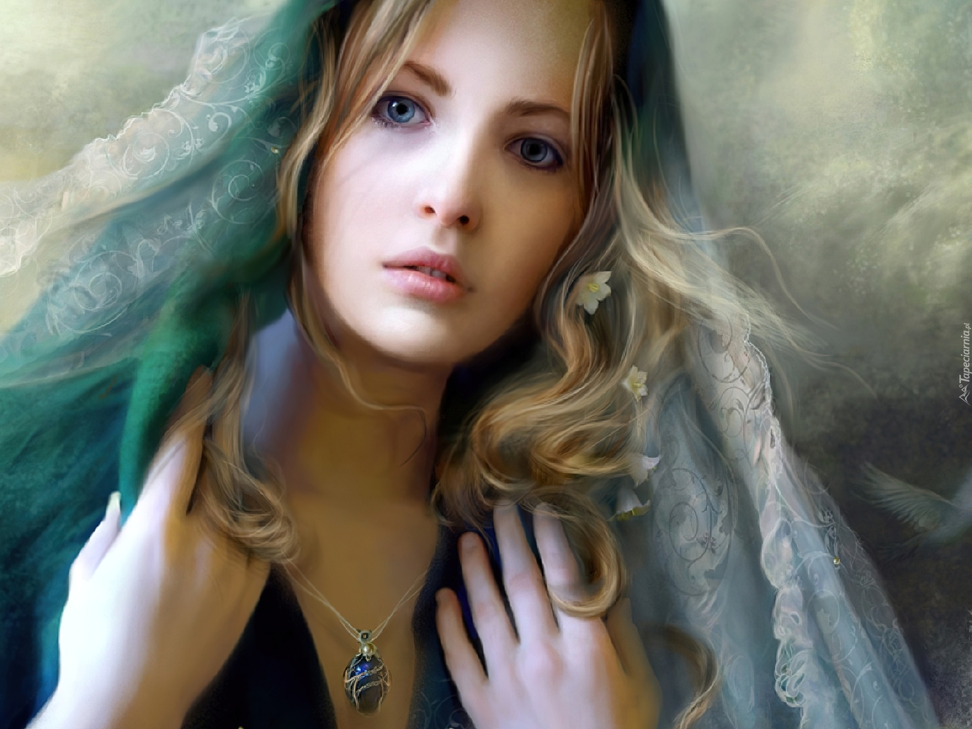Edytor tapety: Dziewczyna, Woal, Kwiatuszki