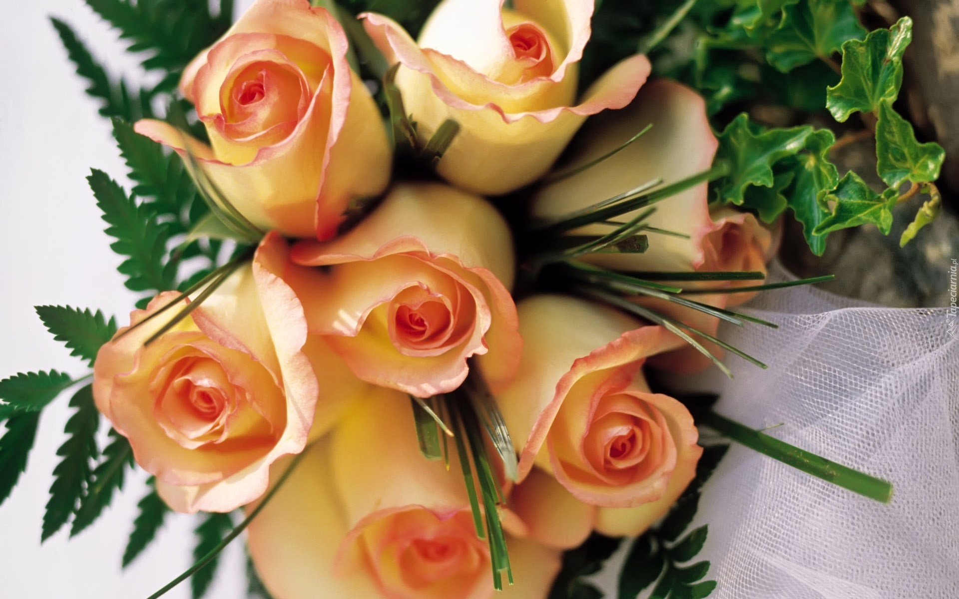 Edytor tapety: Zieleń, Róże, Bukiet