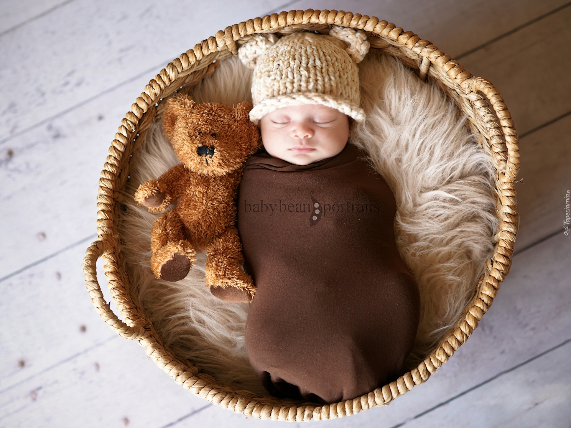 Edytor tapety: Śpiace, Niemowlę, Misio, Kosz