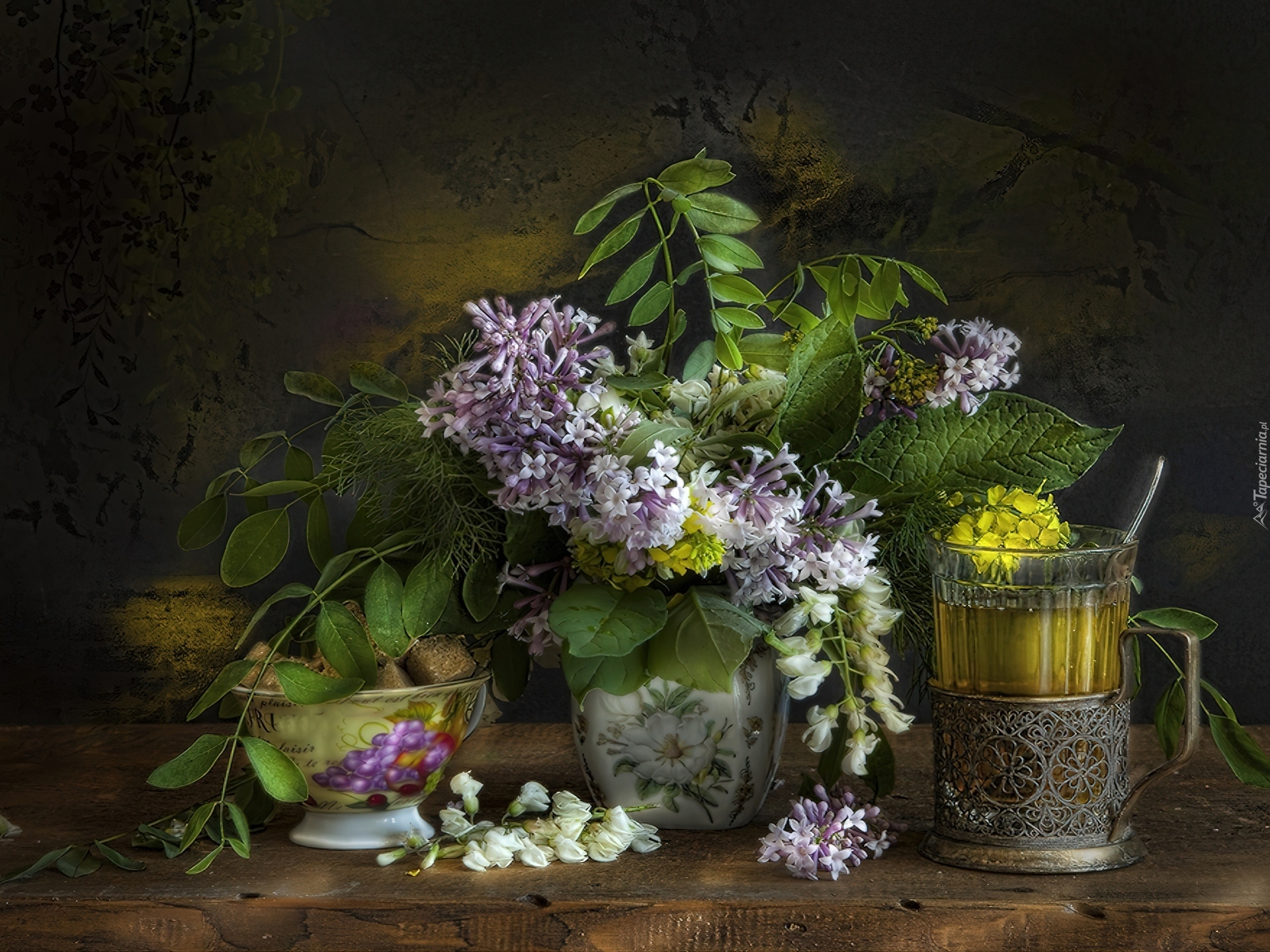 Edytor tapety: Gałązki, Bzu, Szklanka
