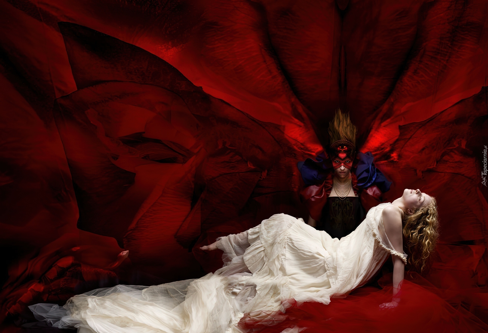Edytor tapety: Dwie, Kobiety, Biel, Czerwień