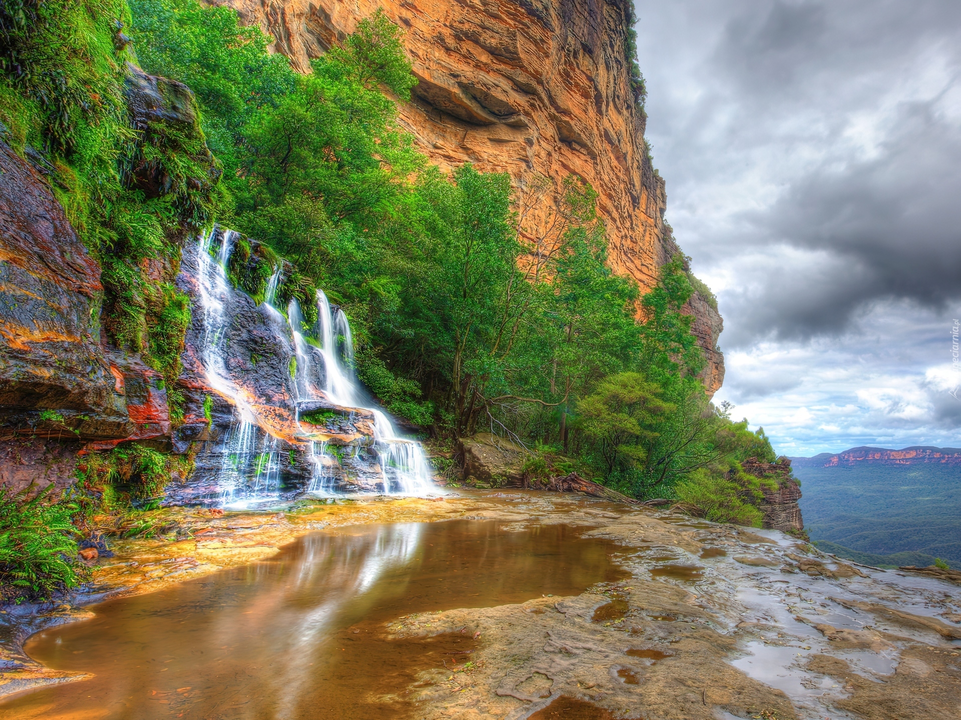 Edytor tapety: Wodospad, Skały