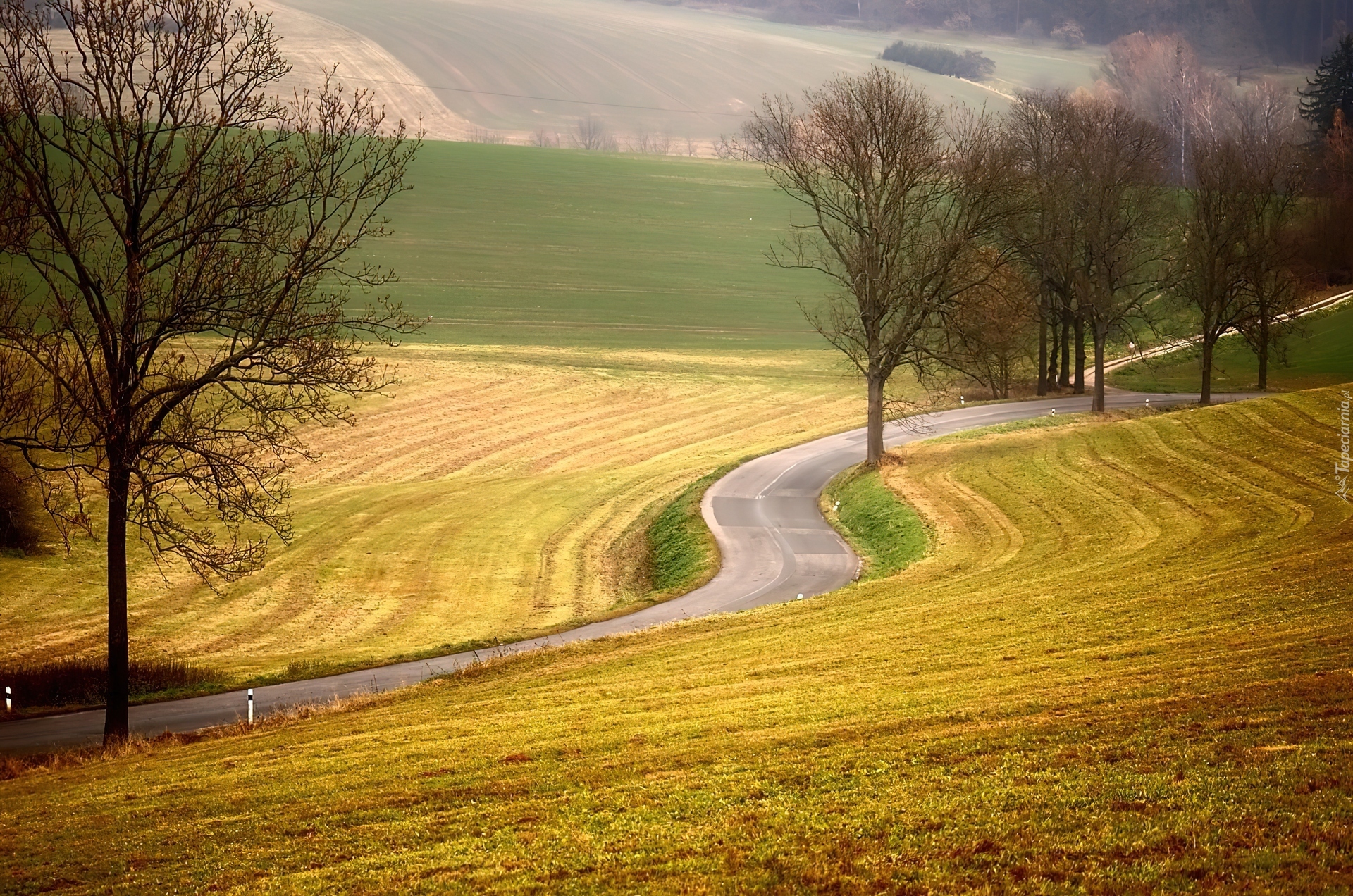 Edytor tapety: Góry, Droga, Pole, Drzewa