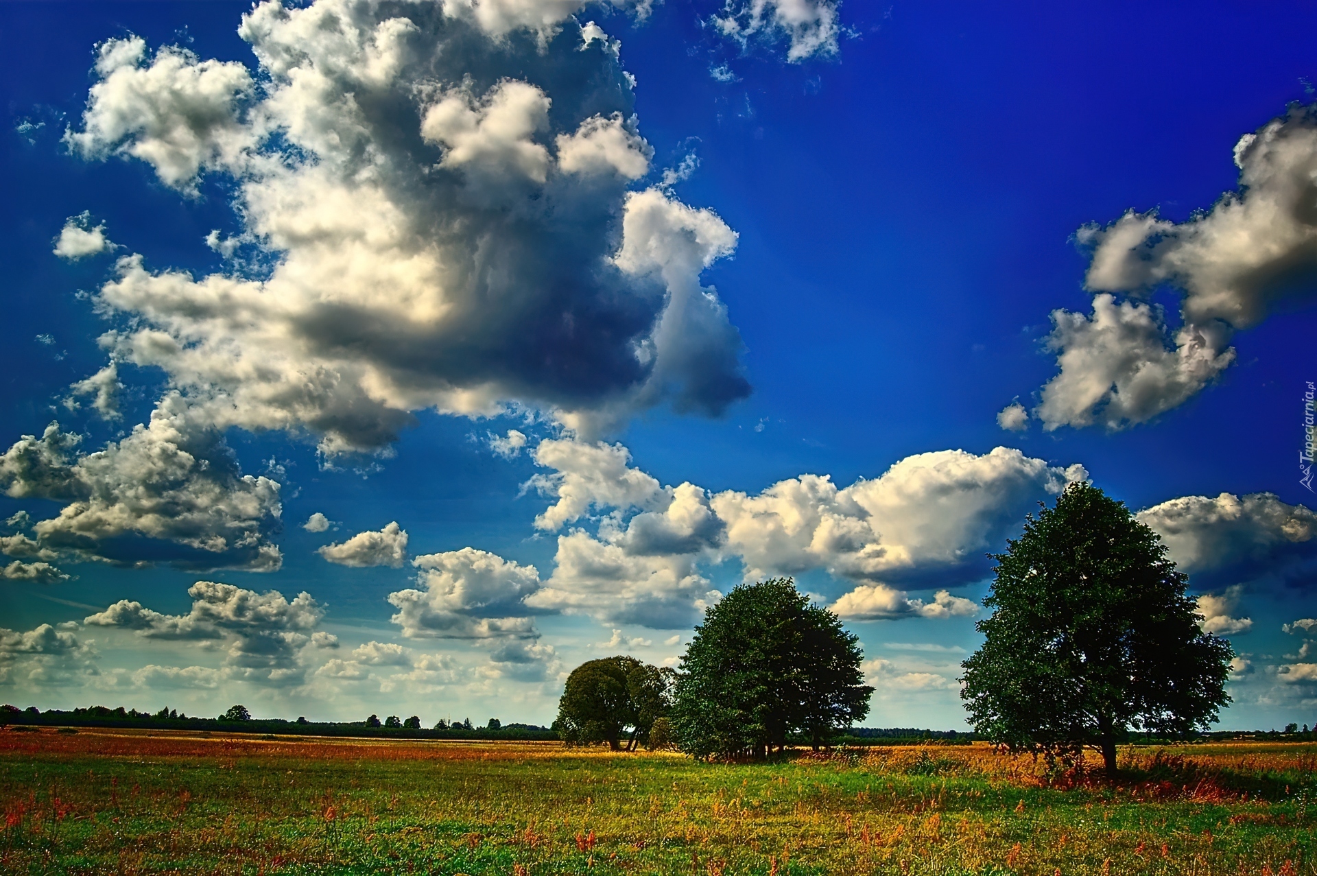 Edytor tapety: Niebo, Chmury, Łąka, Drzewa