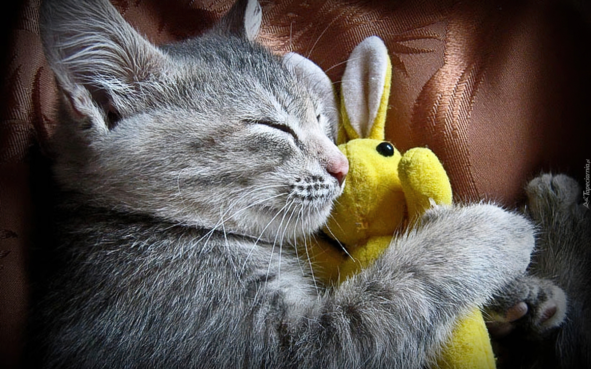 Edytor tapety: Śpiący, Kotek, Króliczek, Maskotka