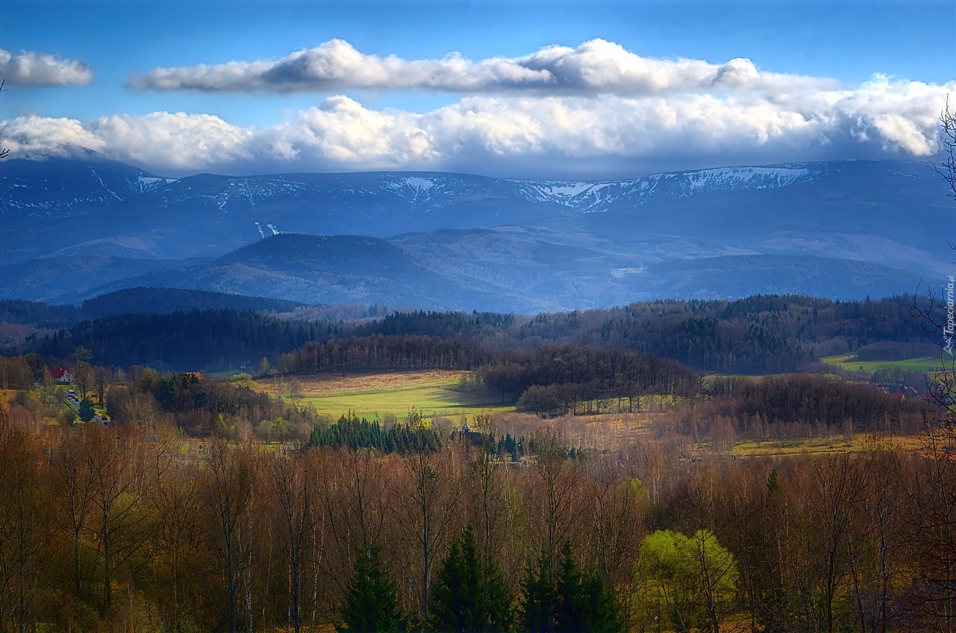 Edytor tapety: Góry, Chmury, Szczyty, Śnieg, Las, Drzewa