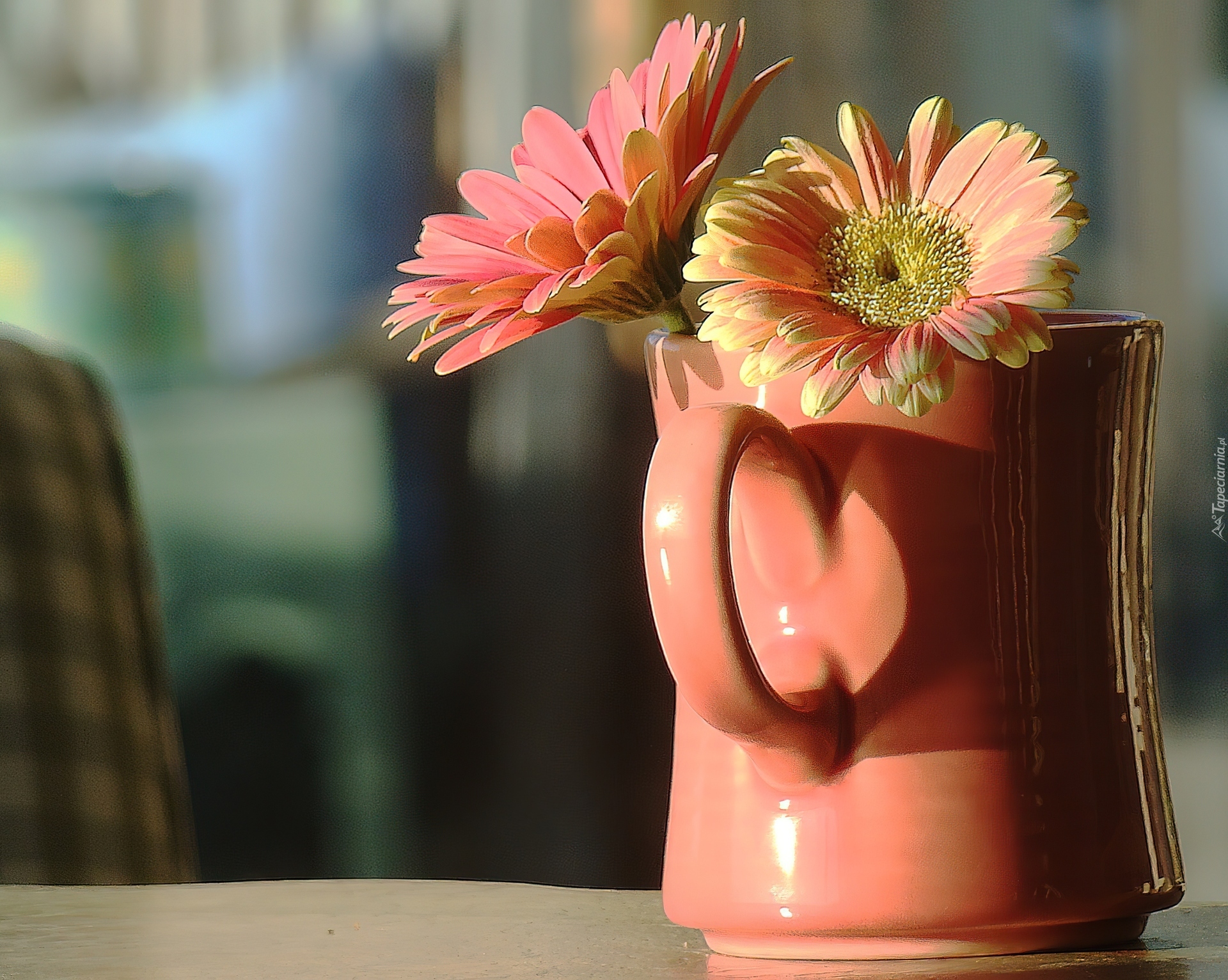 Edytor tapety: Dwie, Gerbery, Kubeczek