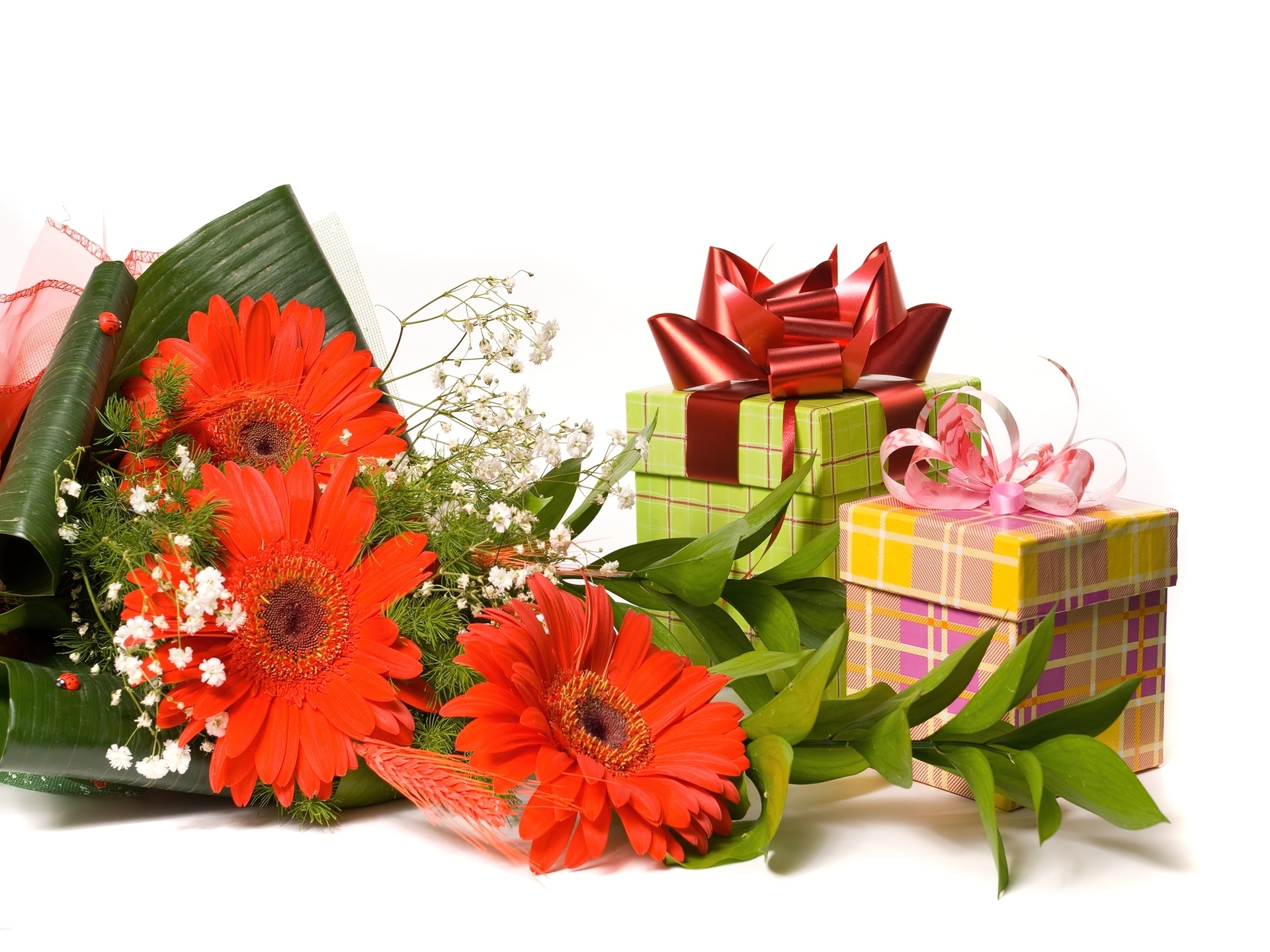 Edytor tapety: Czerwone, Gerbery, Pudełeczka, Wstążki