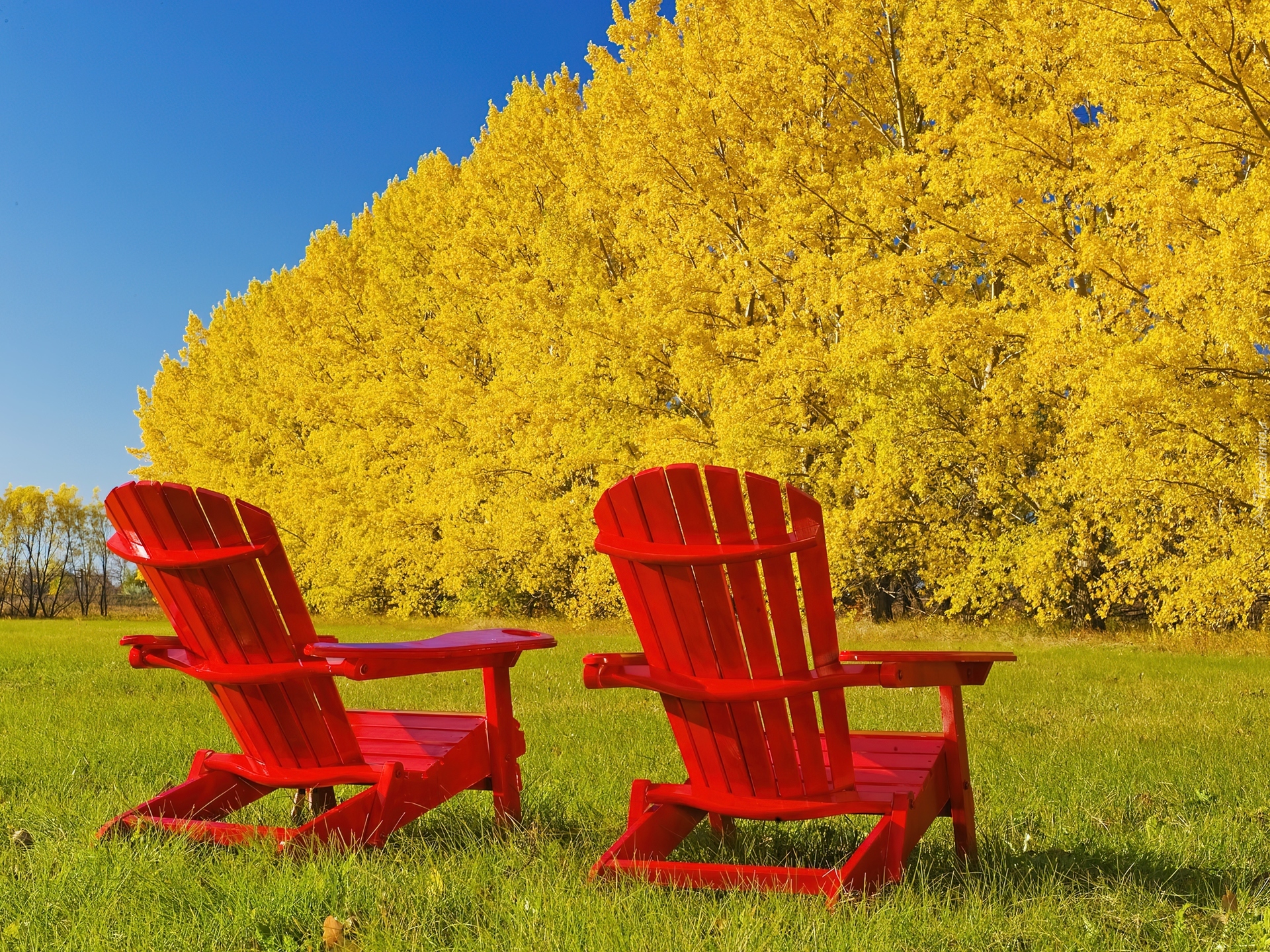 Edytor tapety: Czerwone, Drewniane, Leżaki, Żółte, Drzewa