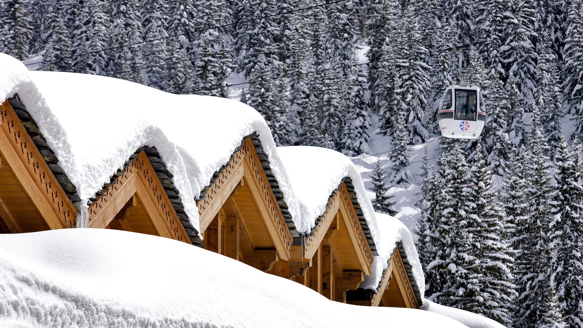 Edytor tapety: Zima, Zaśnieżone, Dachy, Kolejka, Linowa