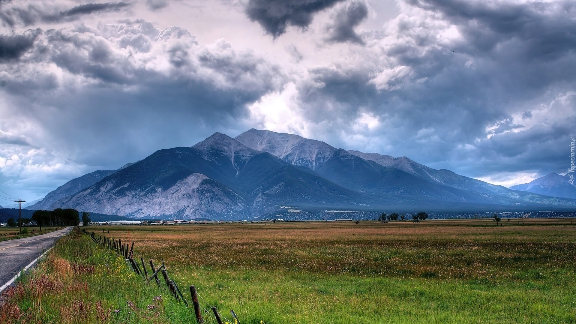 Edytor tapety: Góry, Ogrodzenie, Łąka, Chmury