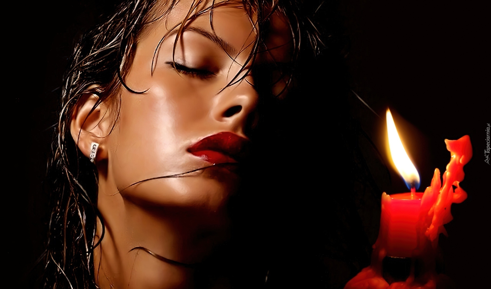 Edytor tapety: Kobieta, Mokre, Włosy, Świeca