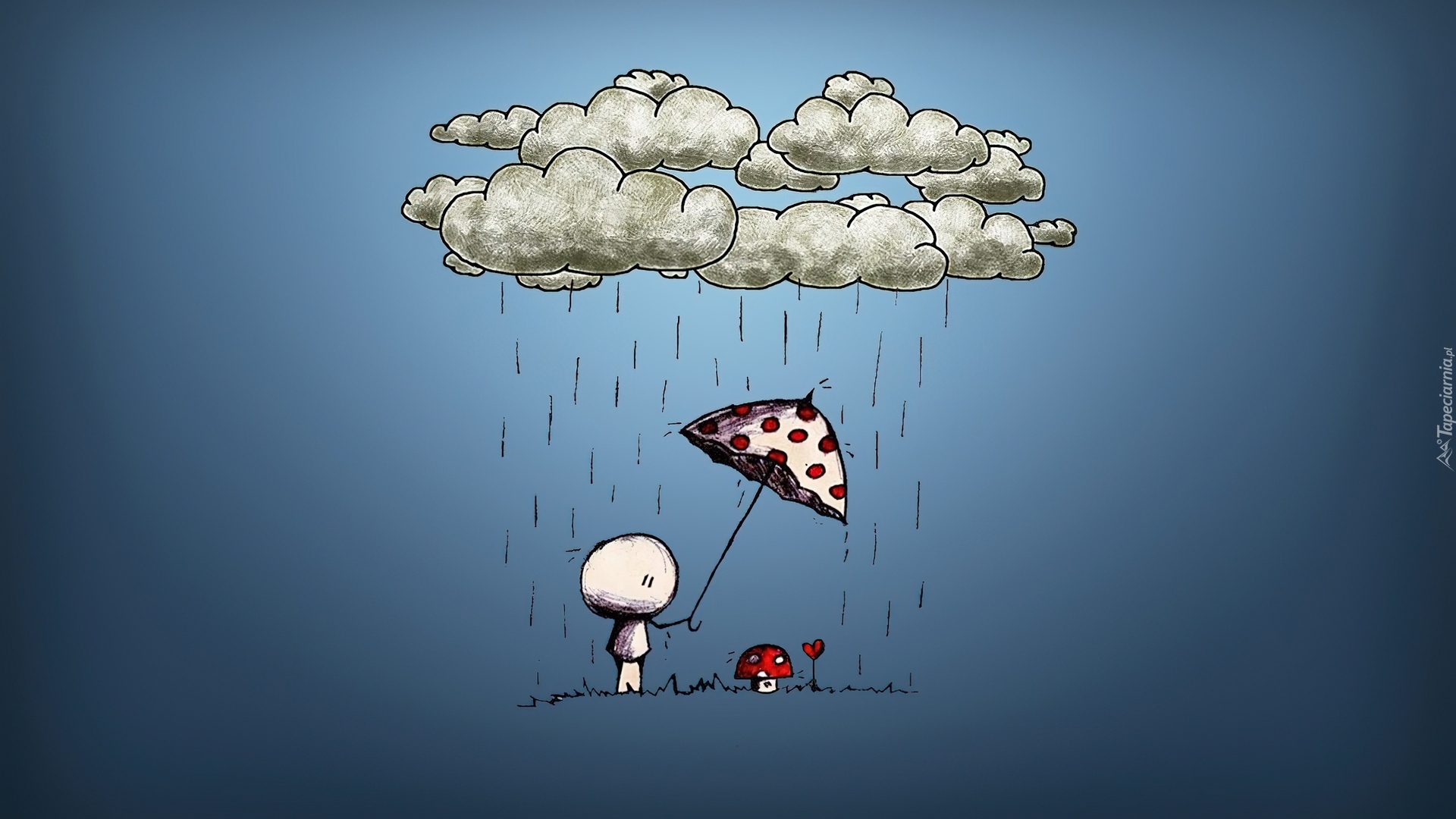 Edytor tapety: Muchomorek, Chmurka, Deszcz, Parasol