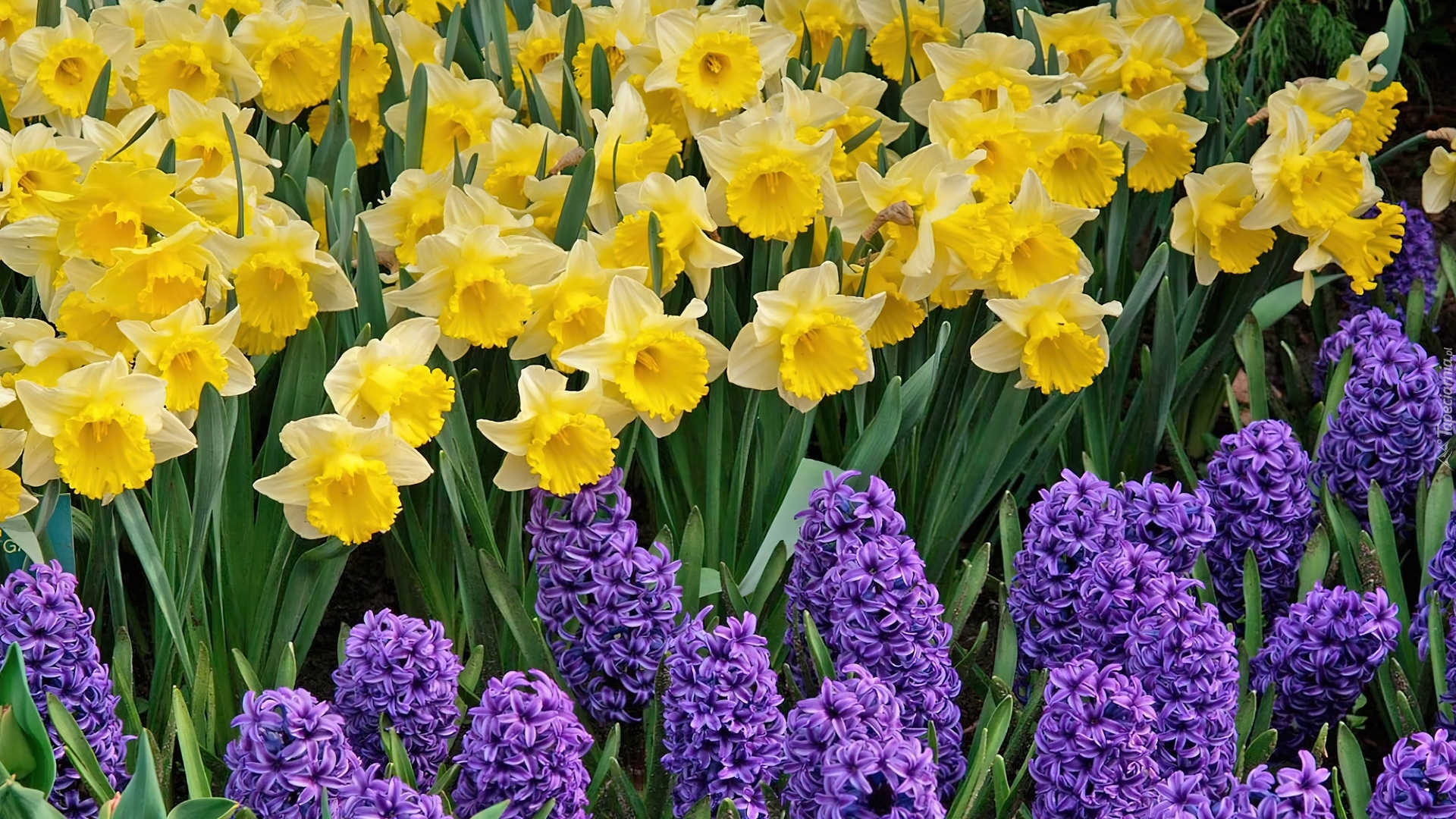 Edytor tapety: Narcyzy, Niebieskie, Hiacynty