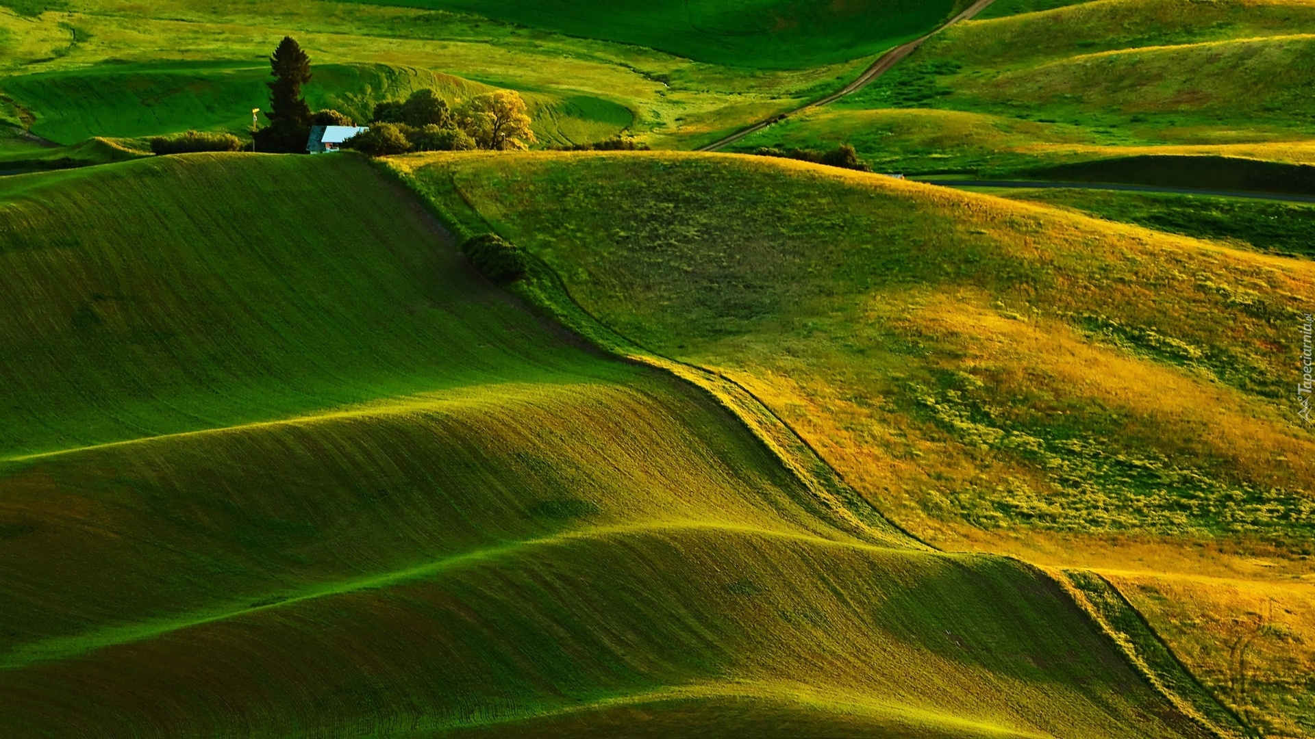 Edytor tapety: Zielone, Pofalowane, Wzgórza, Pola