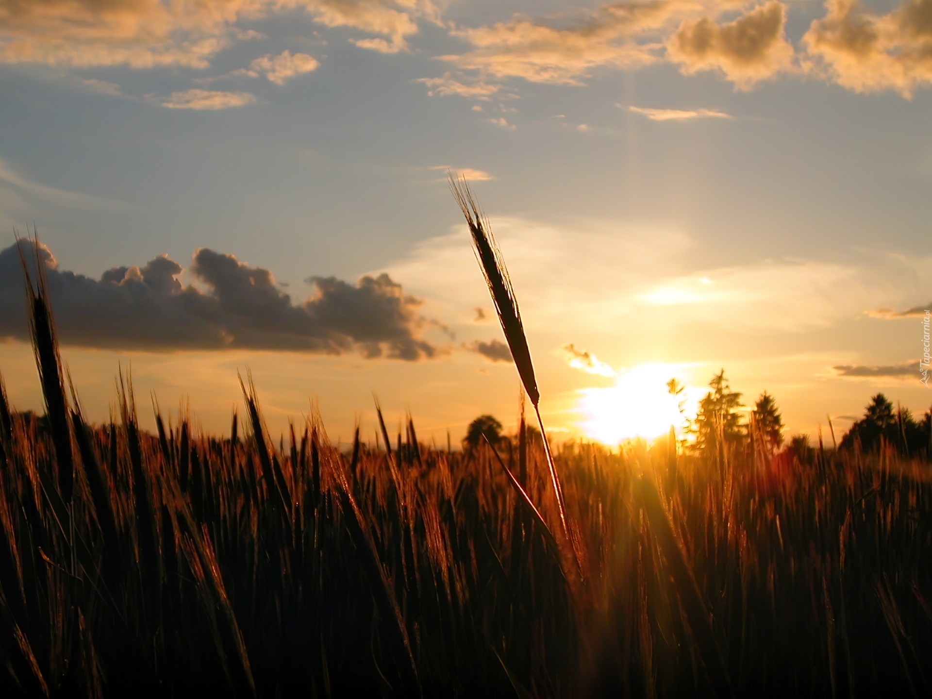 Edytor tapety: Pole, Zachód, Chmury